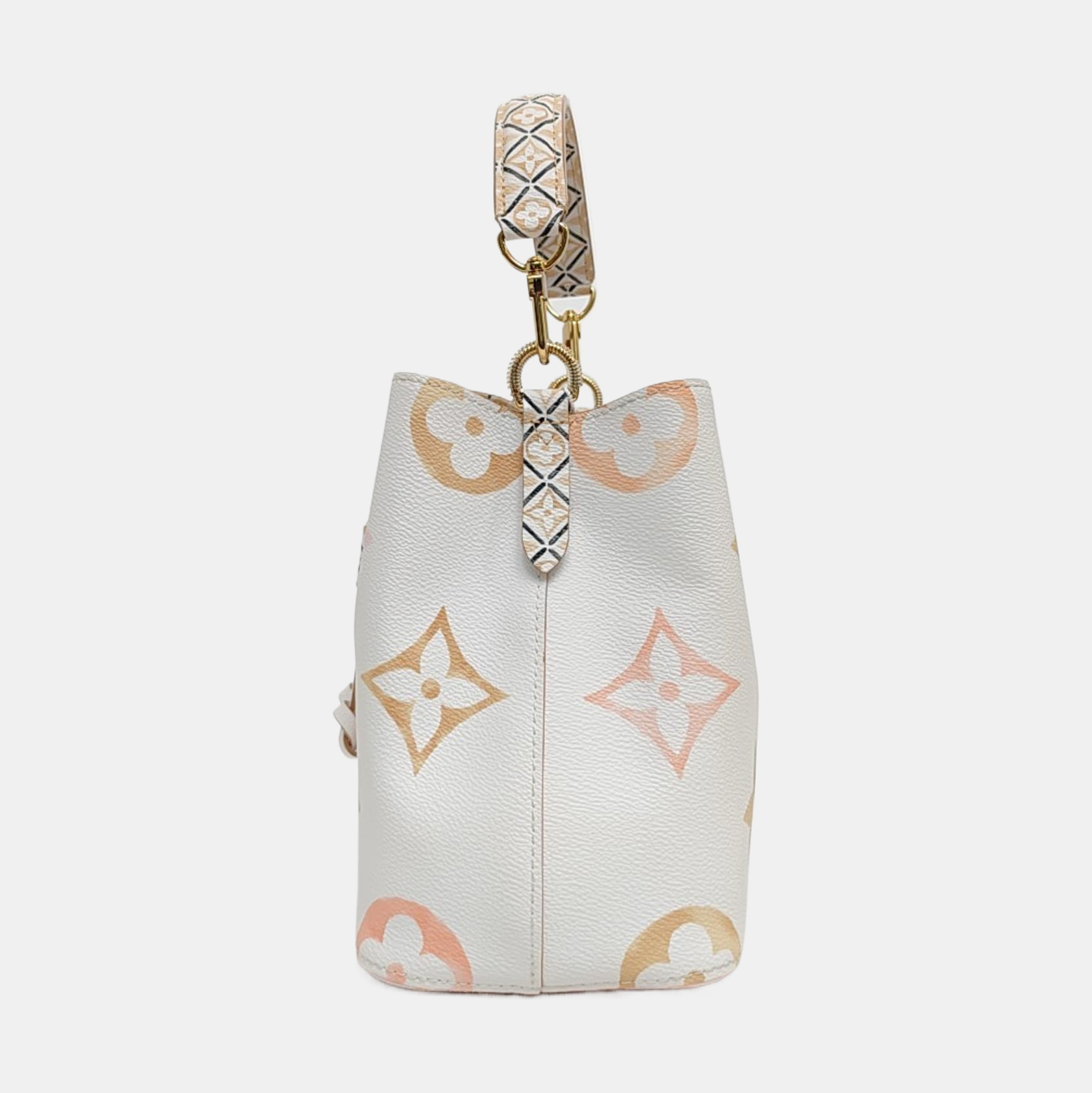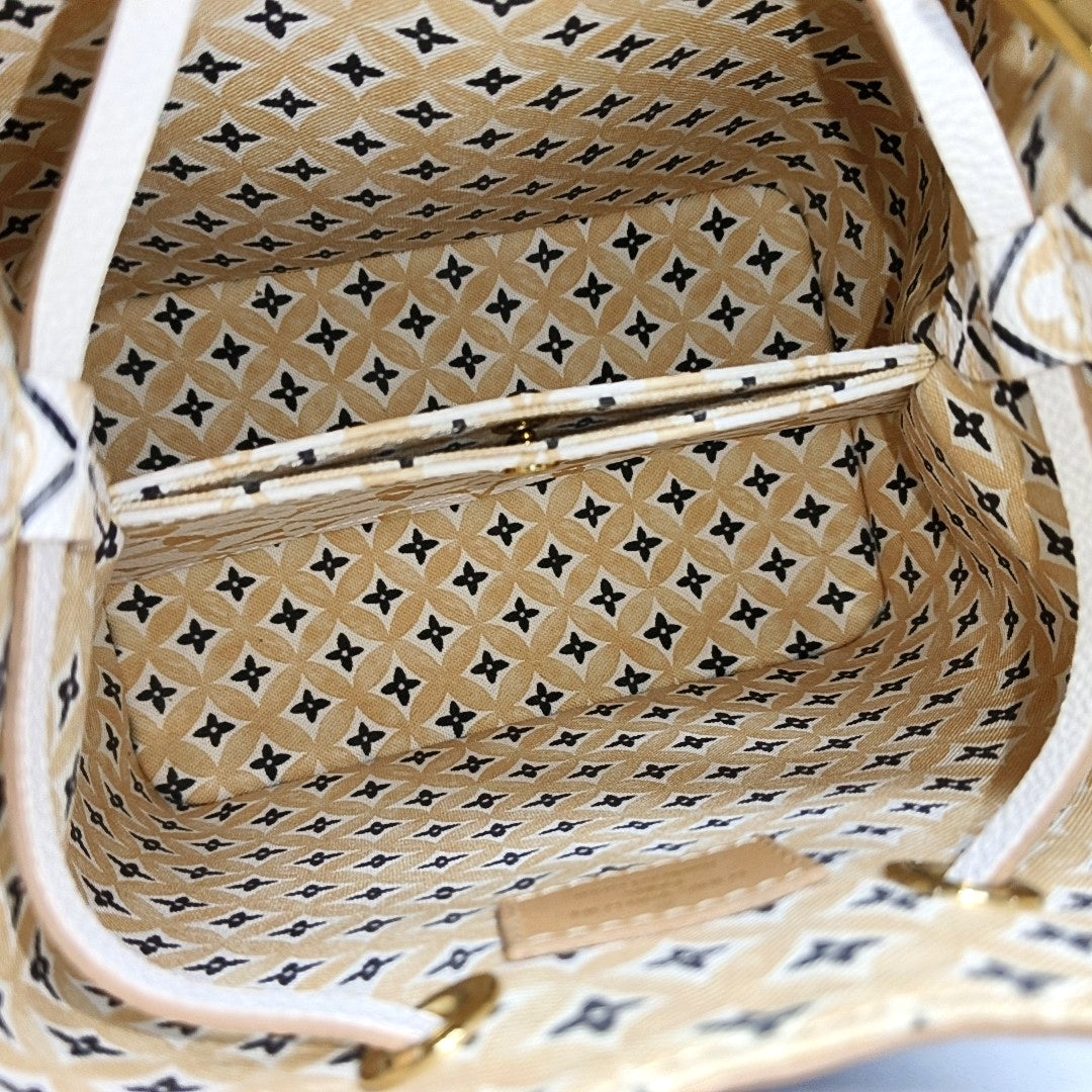 LOUIS VUITTON NÉONOÉ Small size white coated canvas monogram single shoulder bag handbag crossbody bag golden hardware 2 detachable shoulder straps-(SKU)-971271612
