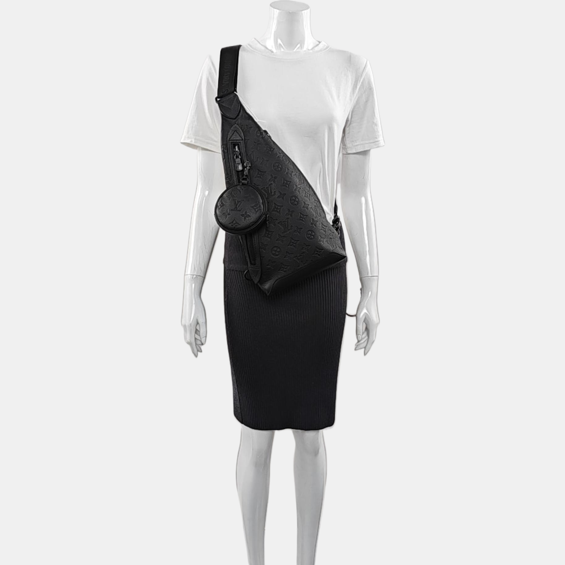 LOUIS VUITTON DUO Black Calfskin Monogram Embossed Crossbody Shoulder Bag with Black Hardware, Pouch-(SKU)-969654004