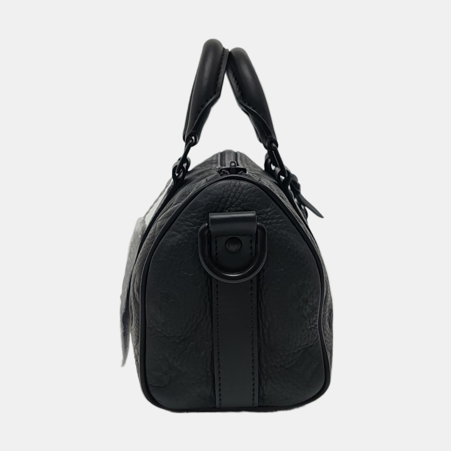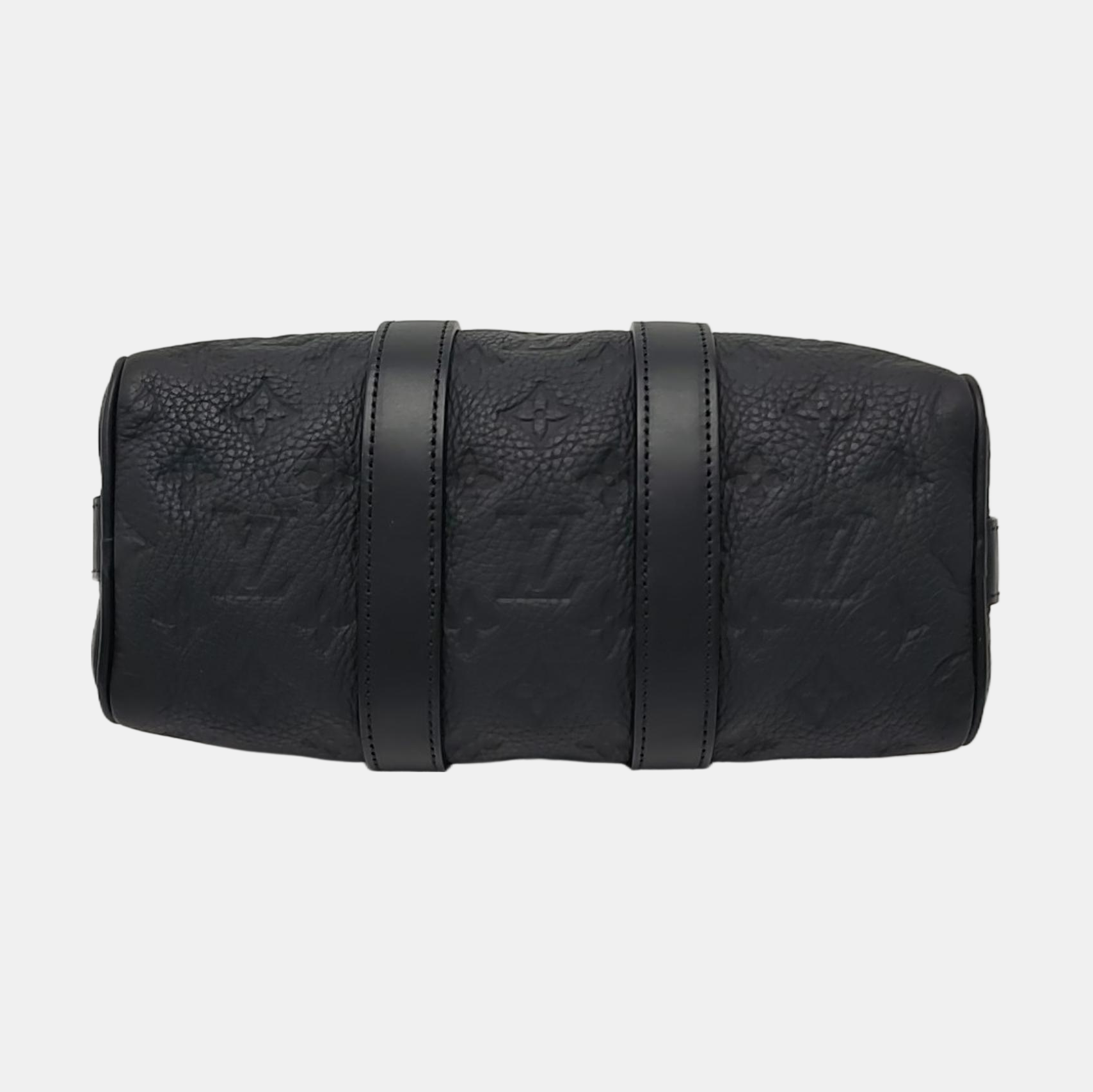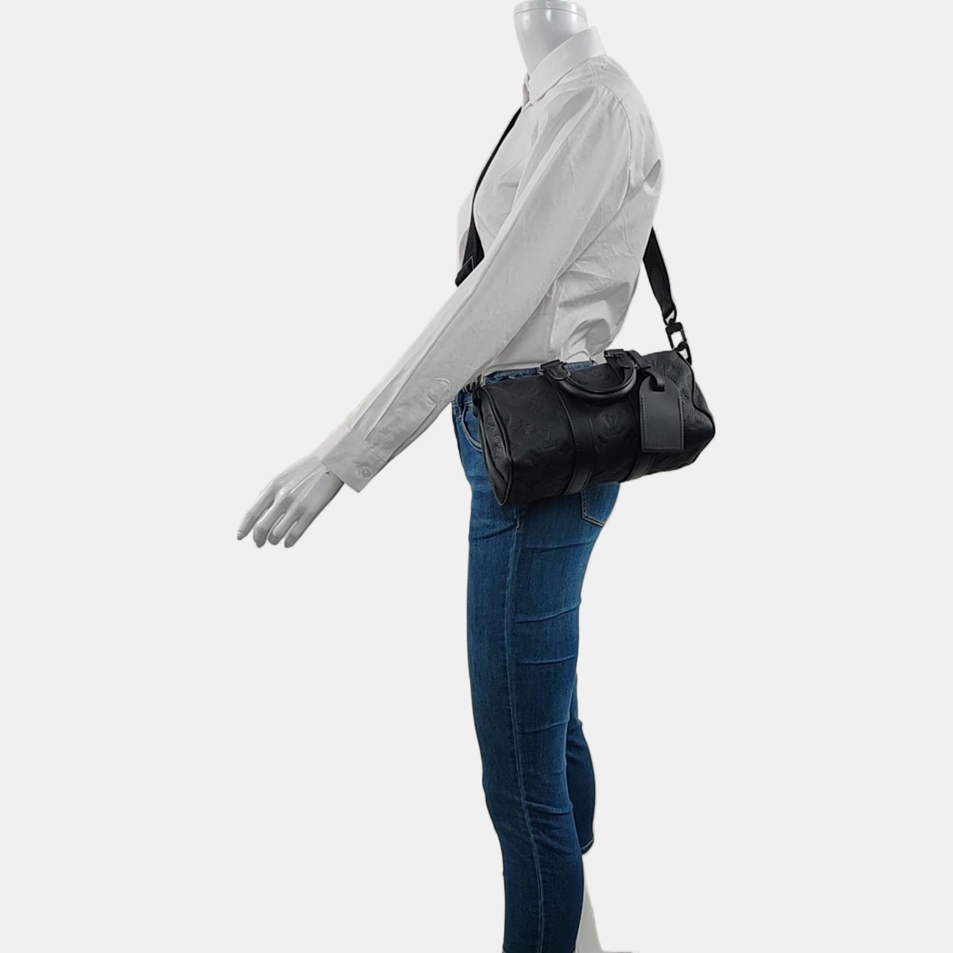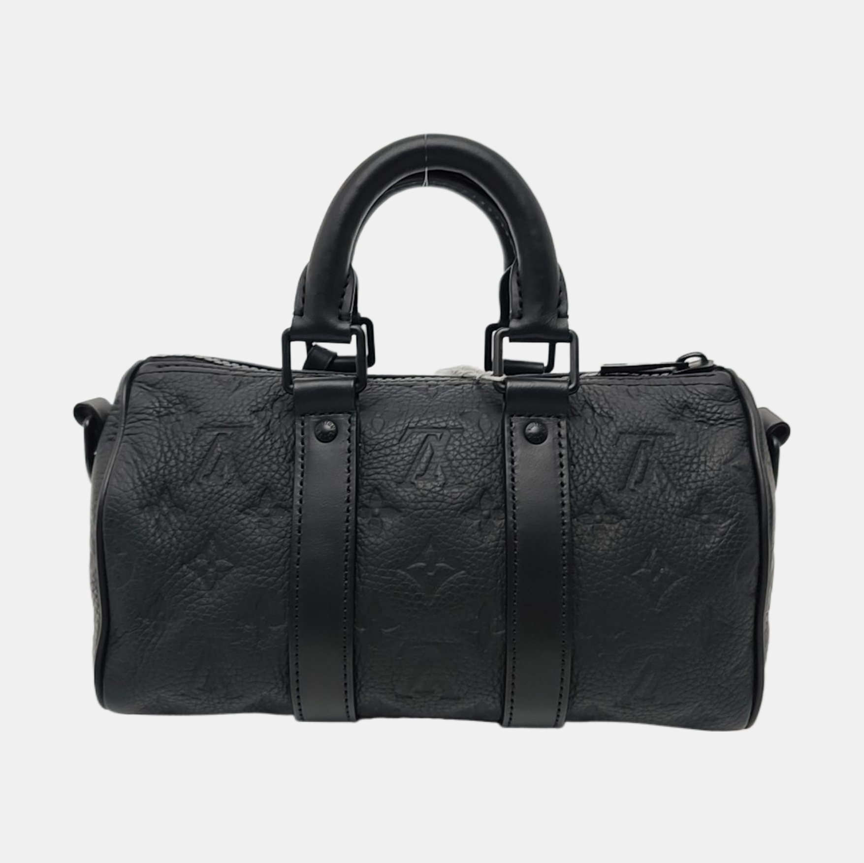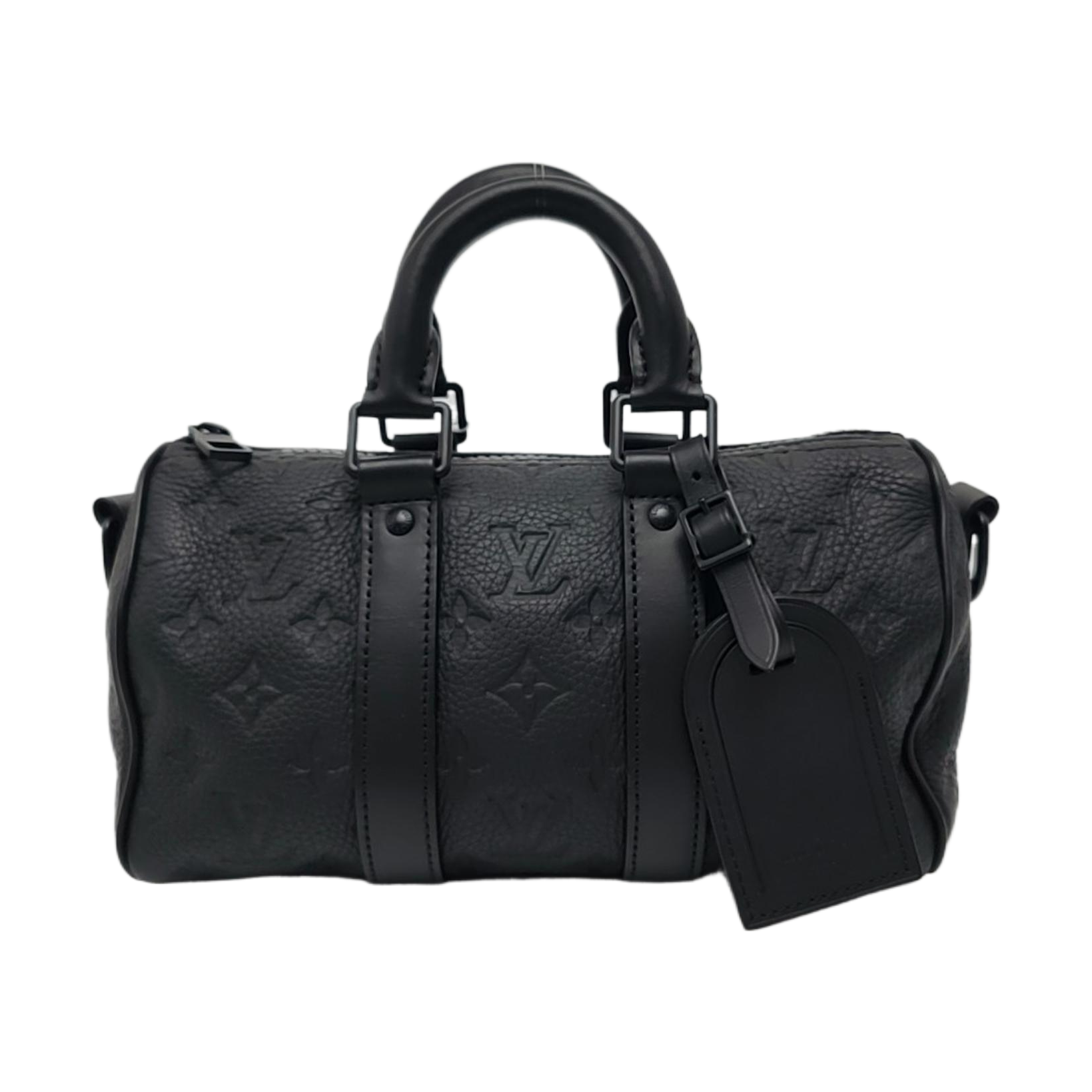 LOUIS VUITTON KEEPALL 25 Black Leather Monogram Damier Ebene Black Single Shoulder Bag Tote Bag Crossbody Bag with Black Hardware and Detachable Shoulder Strap-(SKU)-970163847
