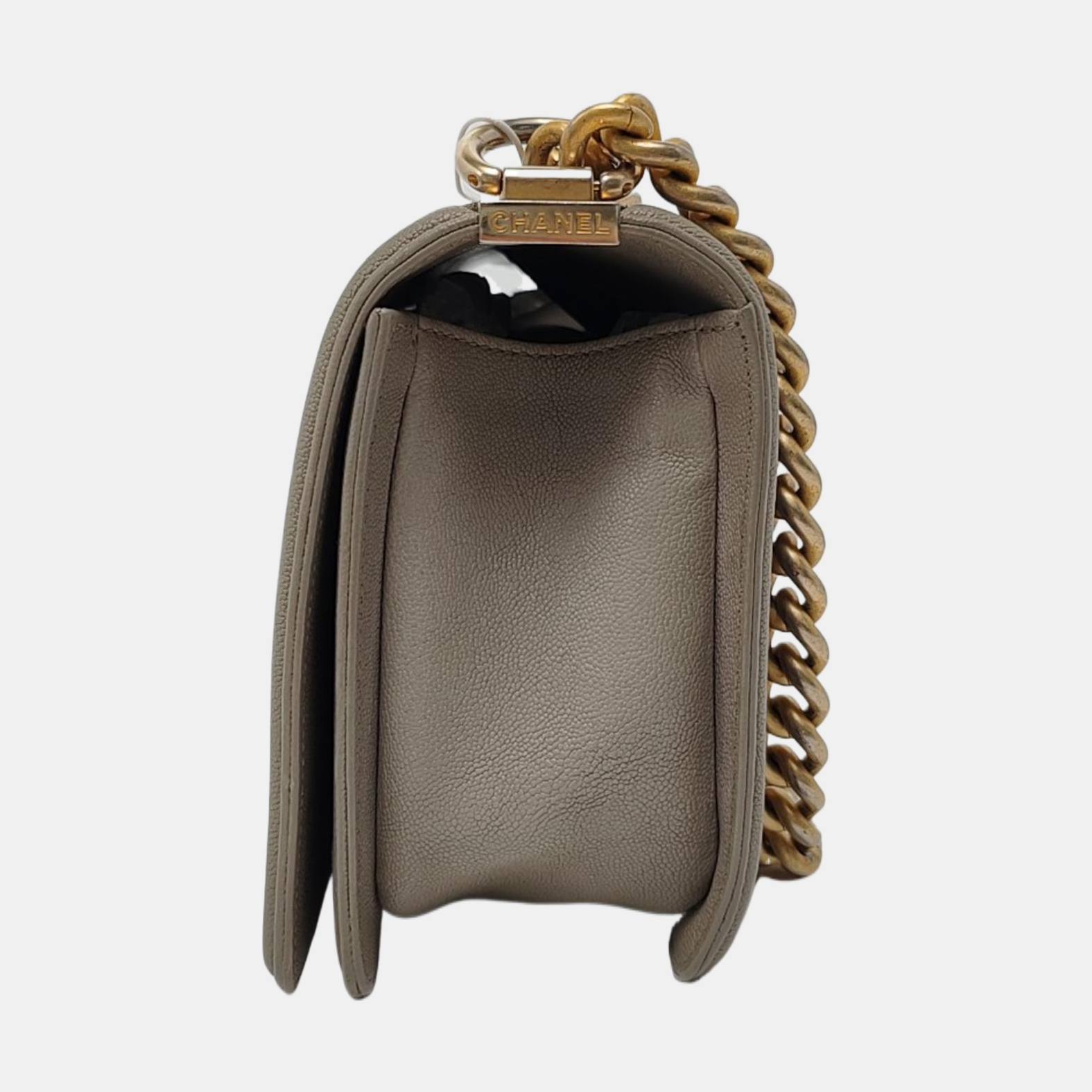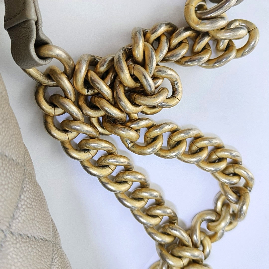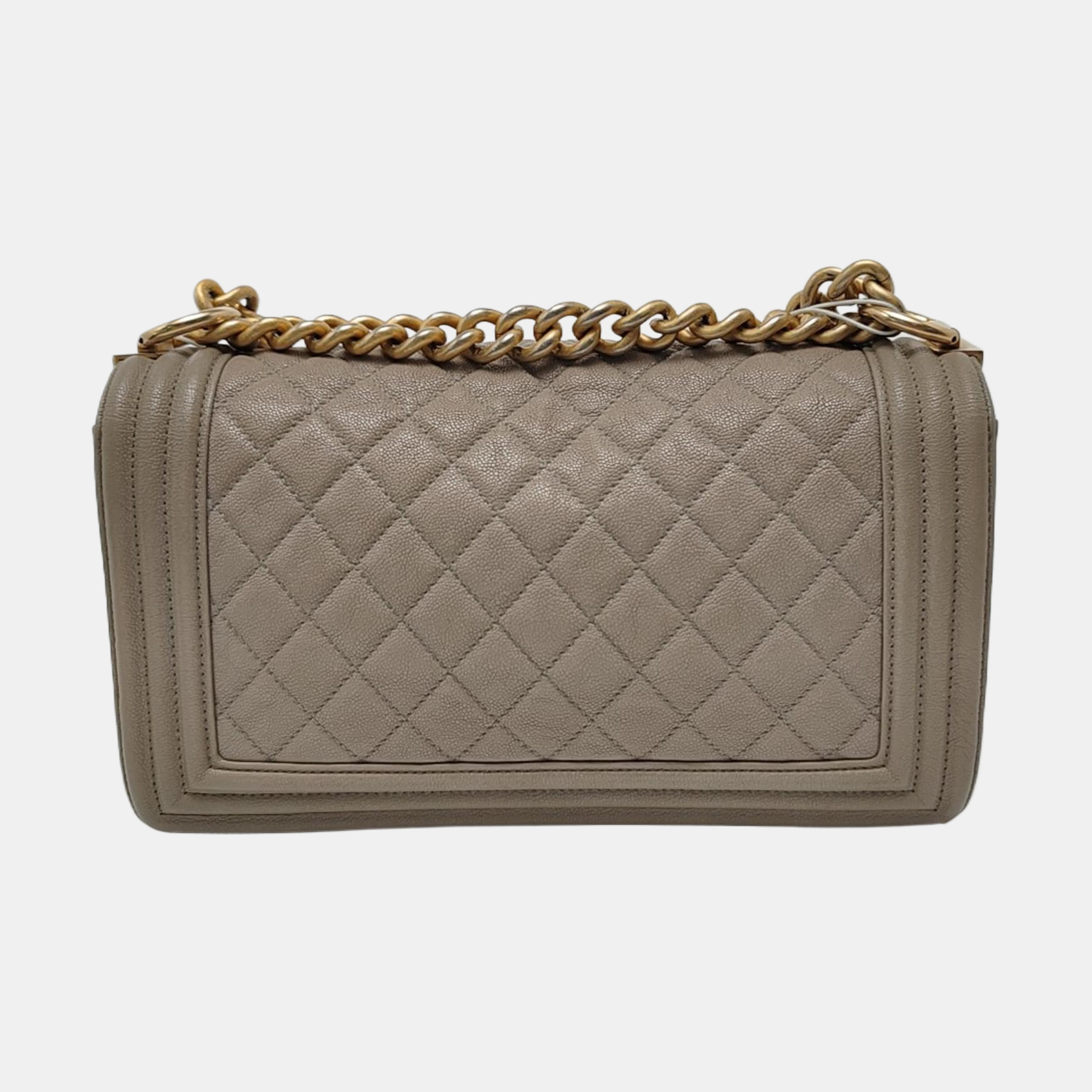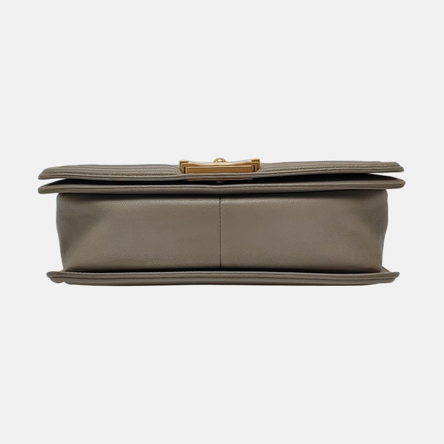 CHANEL BOY CHANEL Medium Size Grey Quilted Calfskin Shoulder Bag, Crossbody Bag with Detachable Strap-(SKU)-968745714