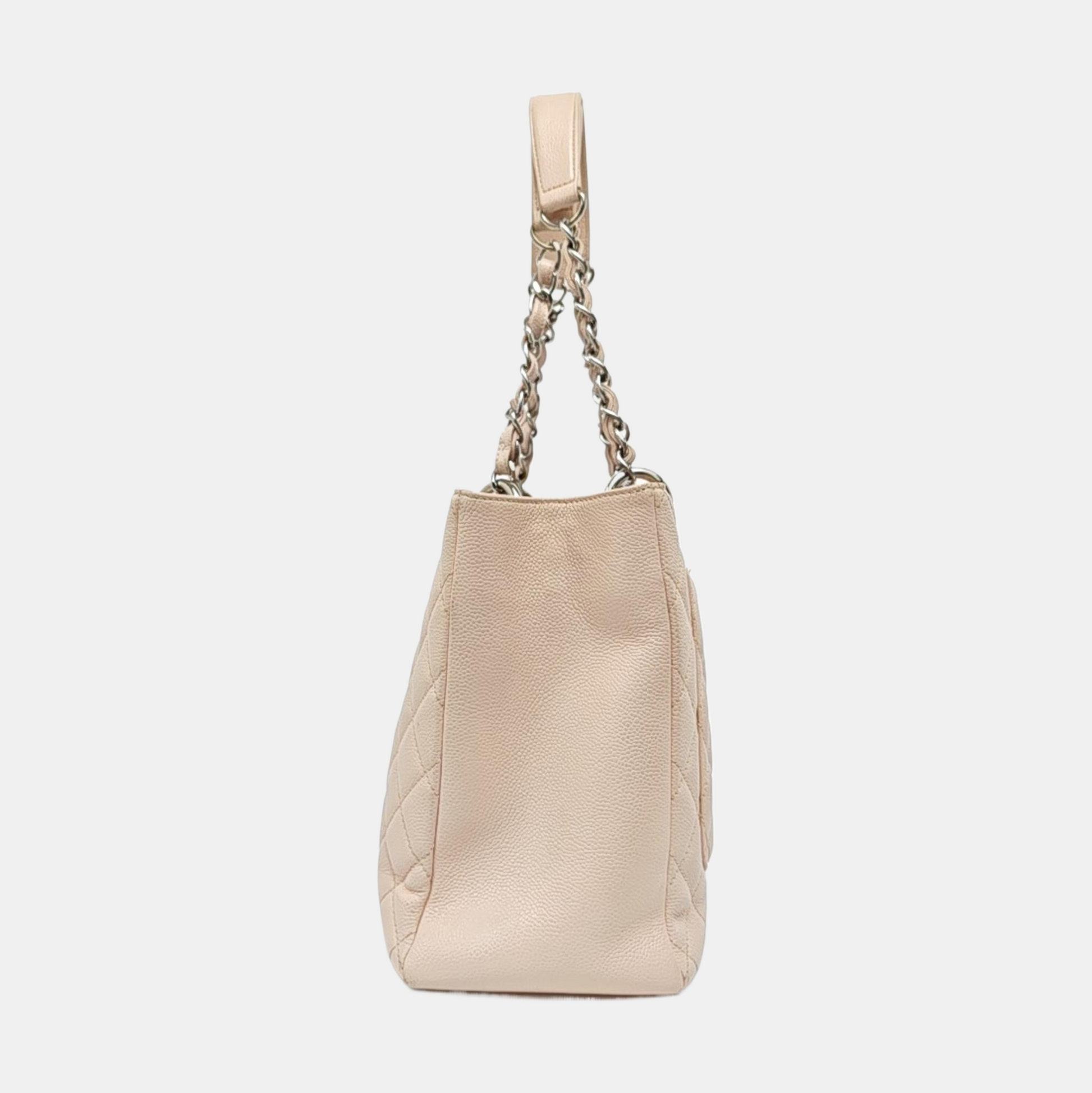 CHANEL CHANEL GST Large Pink Calfskin Quilted Lambskin Leather Chain Shoulder Bag Handbag Silver Hardware 17 Clasp-(SKU)-968770911