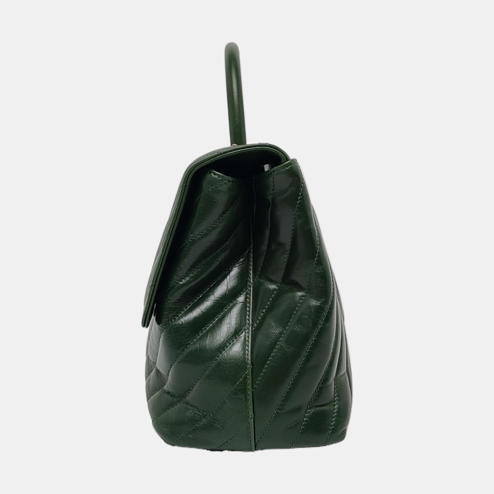 CHANEL COCO HANDLE Large Green Calfskin Quilted V Pattern Single Shoulder Bag Handbag Detachable Strap-(SKU)-963065464