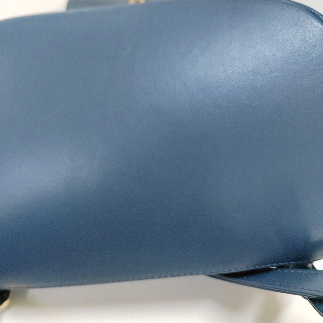 Detailed description: Edge wrapping around the opening、Drawstring、Hardware buckle with moderate scratches、Zipper、Slight stains on the hardware,Strap、Slight creases on the inside of the flip cover,Slight scratches on the bottom side