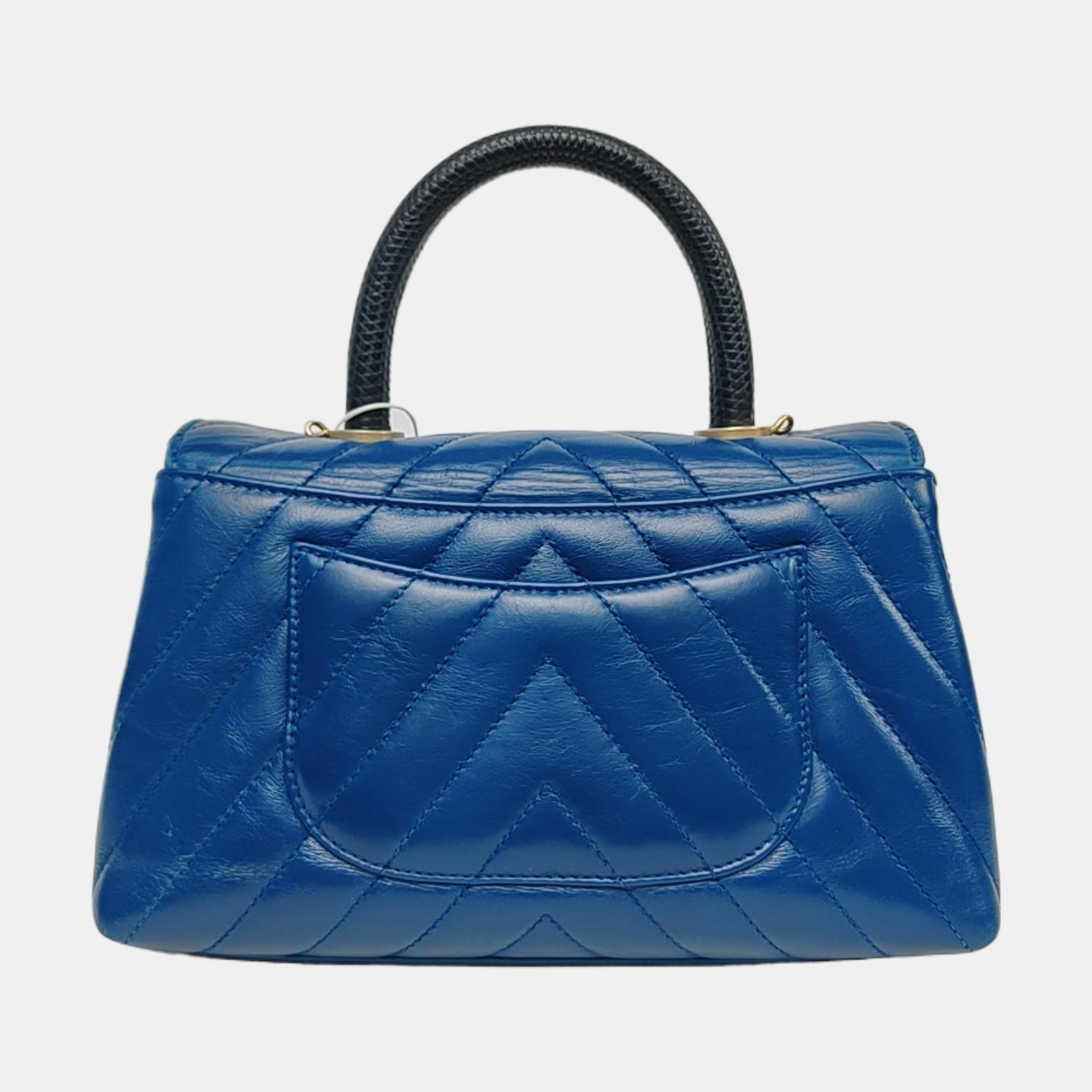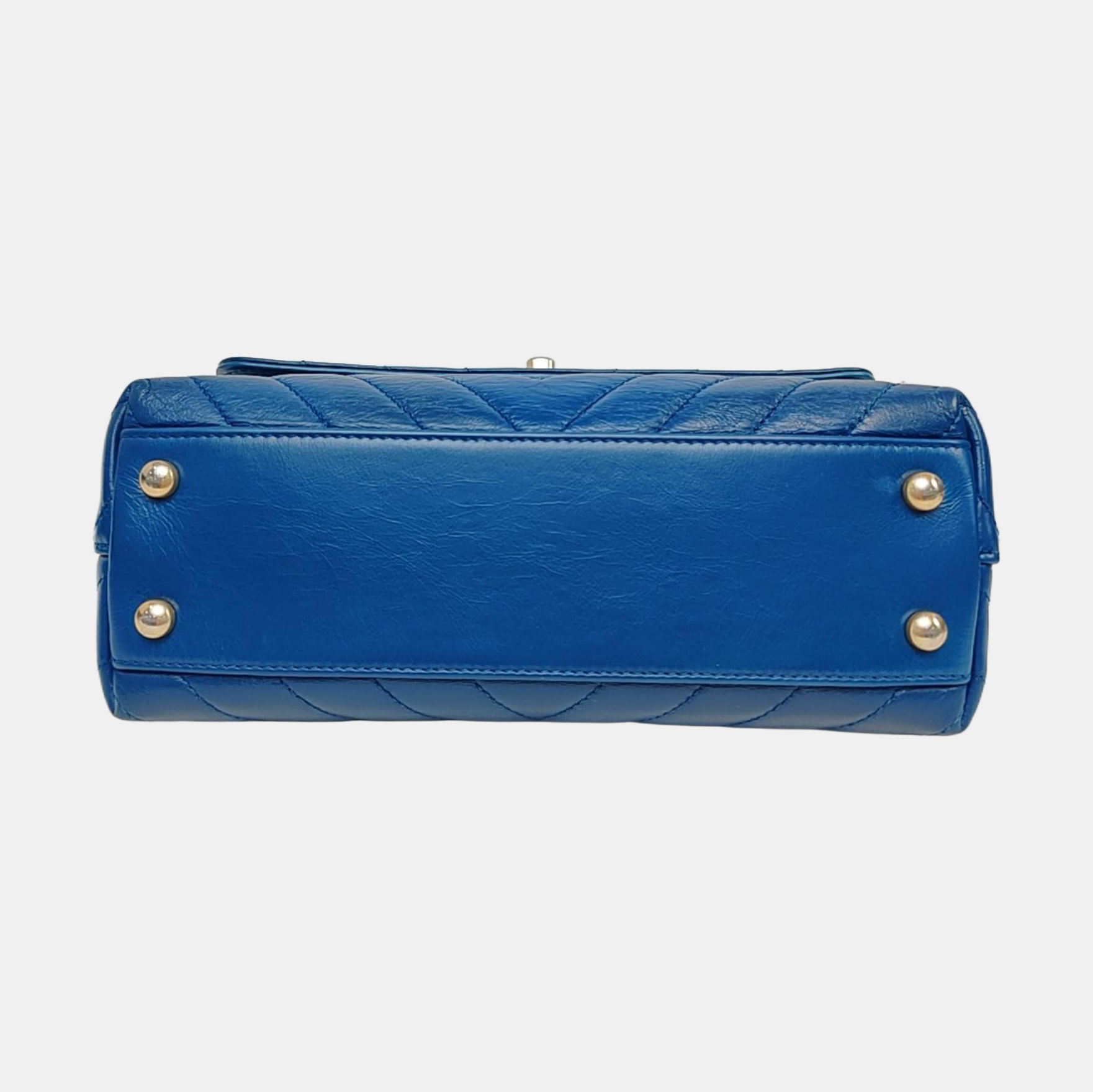 CHANEL COCO HANDLE Medium Size Blue Calfskin Quilted V Pattern Single Shoulder Bag with Gold Hardware 25 Compartments Removable Shoulder Strap-(SKU)-965602661