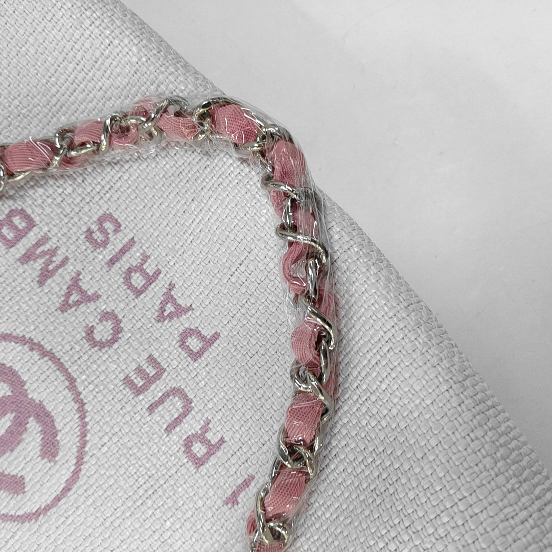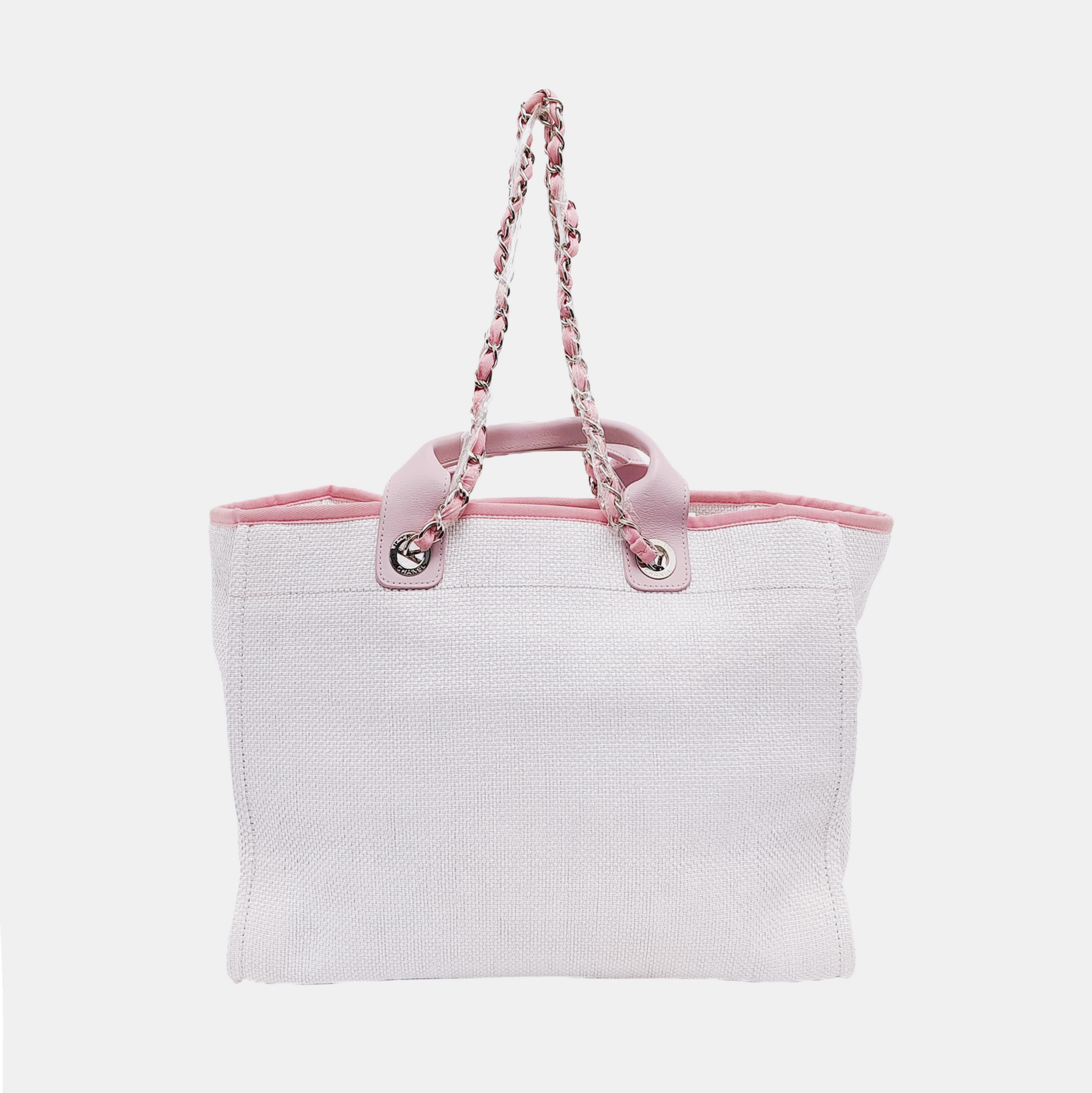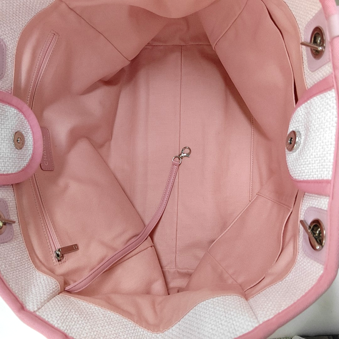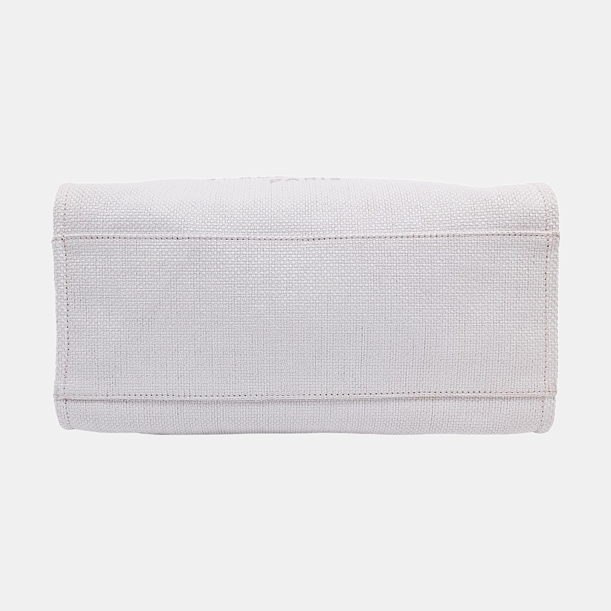 CHANEL DEAUVILLE Large White Canvas Beach Bag Single Shoulder Bag with Silver Hardware, 21 Clasp-(SKU)-950557027
