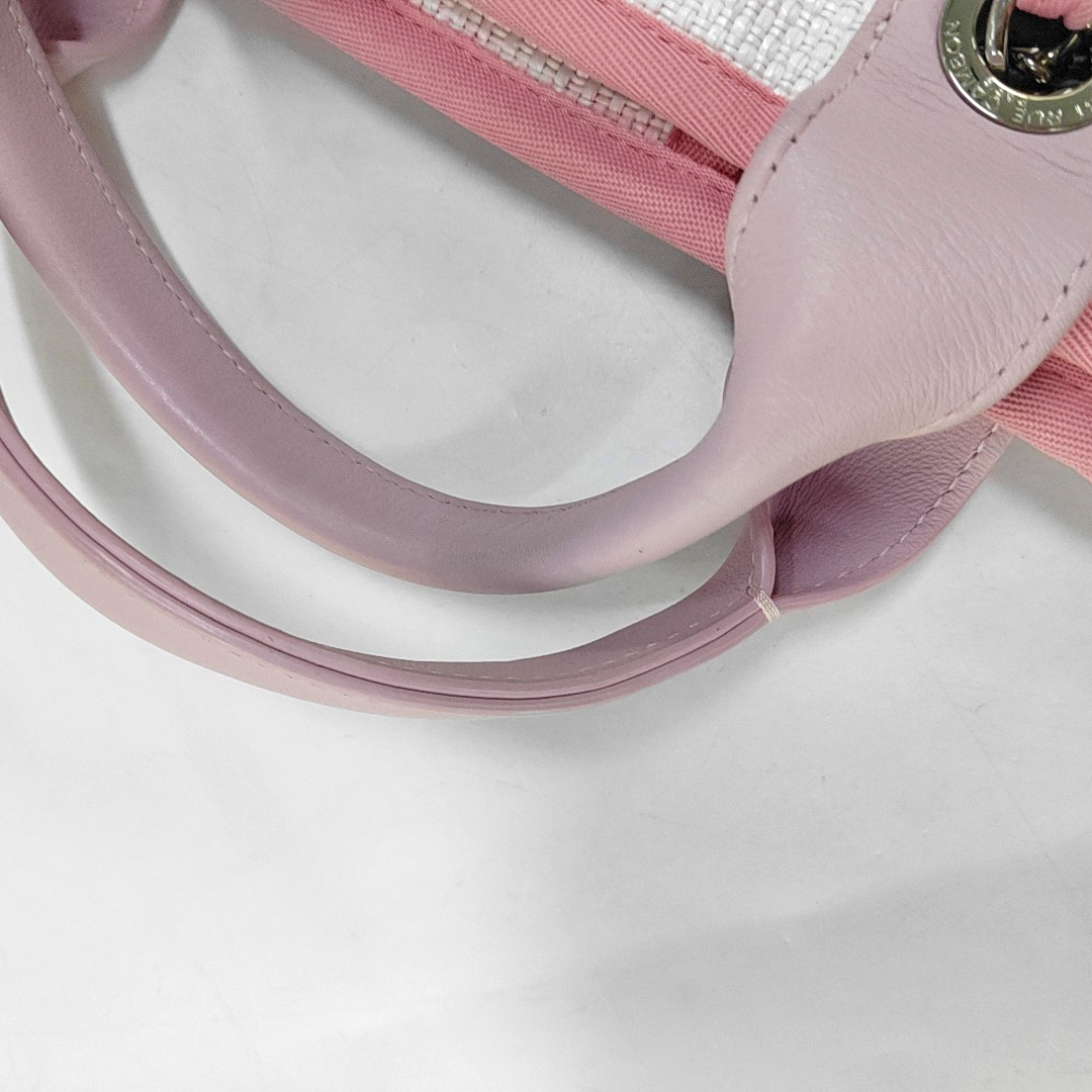 Detailed description: Interior、Front、Back side、Four corners、Slight stains on the handheld,Strap、Edge wrapping around the opening、Front、Back side、Slight wear on the four corners