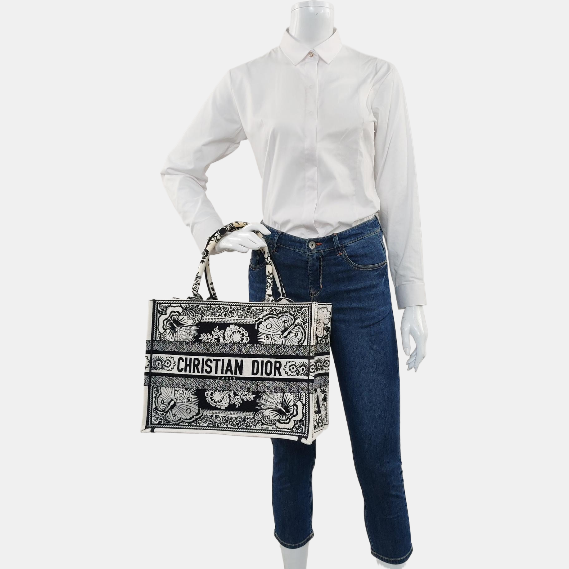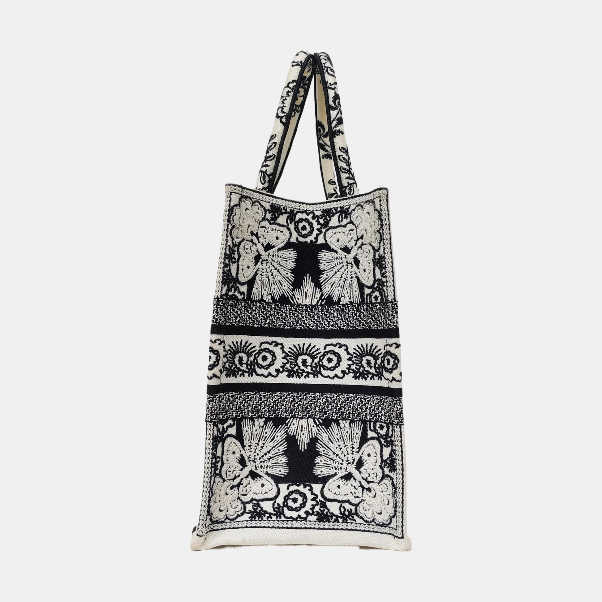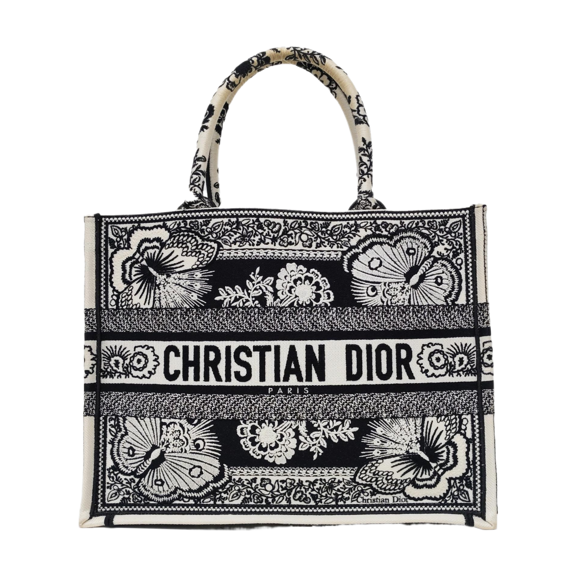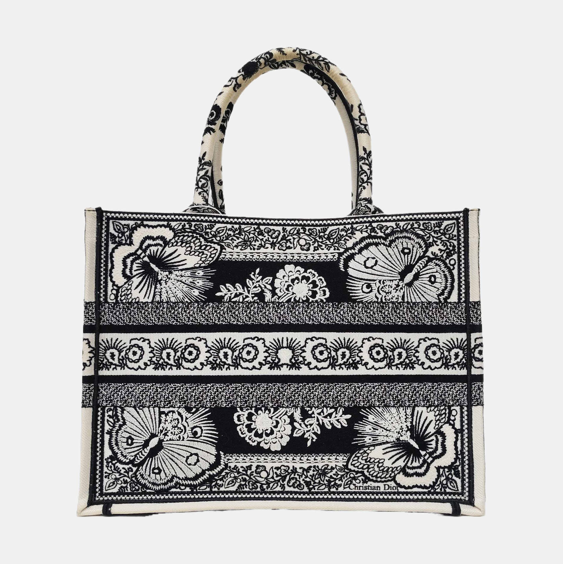 DIOR Book Tote Medium Black Fabric Jacquard Tote Bag-(SKU)-968261752