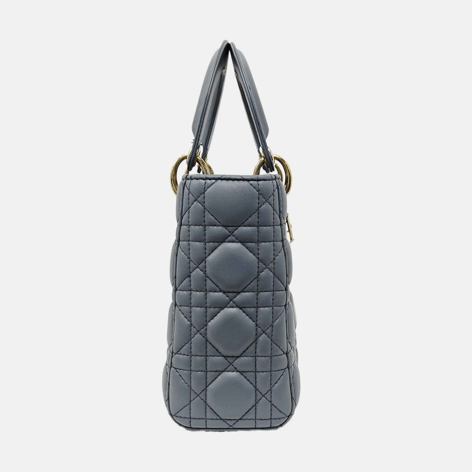 DIOR Lady Dior Small Light Blue Lamb Skin Quilted Diagonal Bag 4-Compartment Single Shoulder Bag Crossbody Handbag with Gold Hardware and Removable Shoulder Strap-(SKU)-967022715