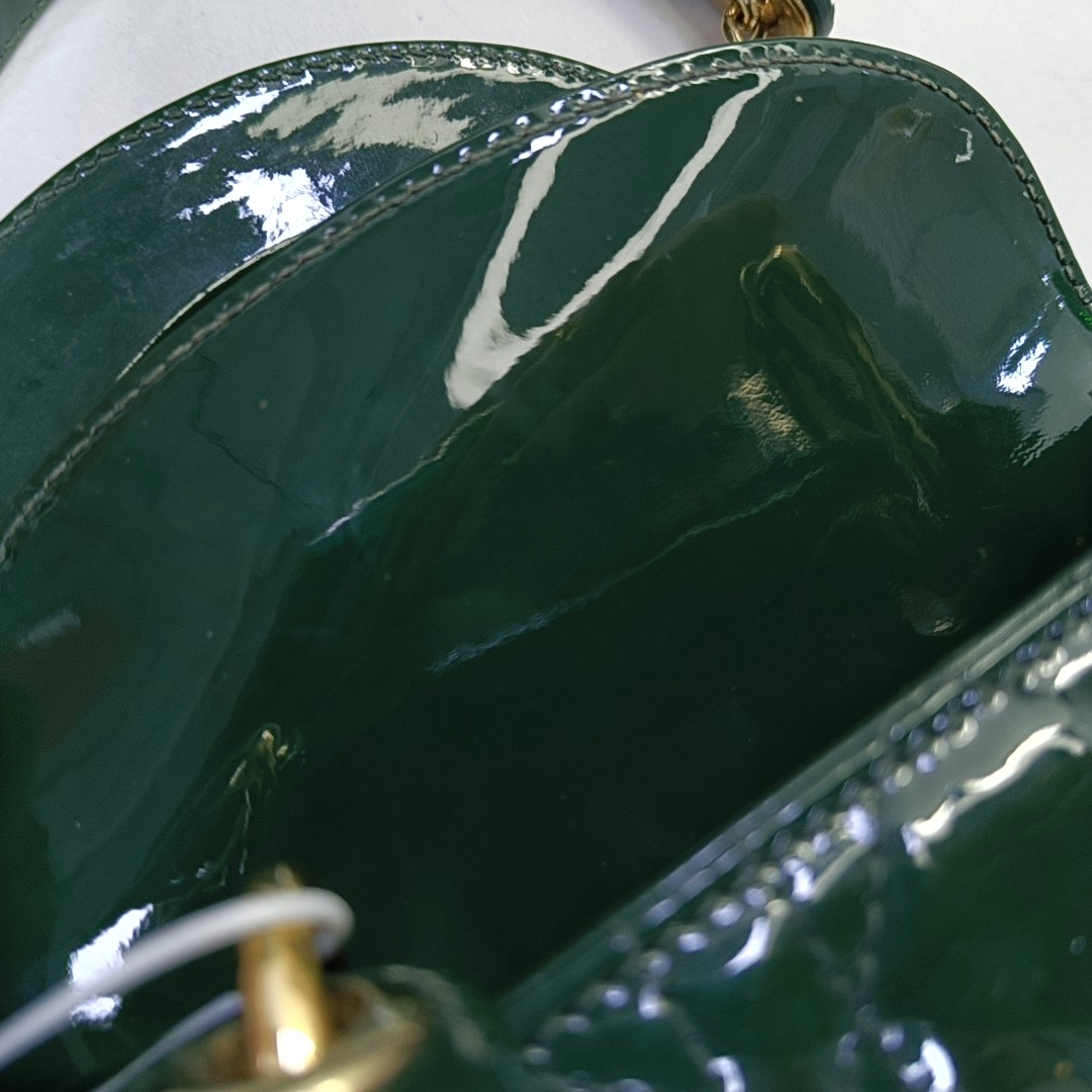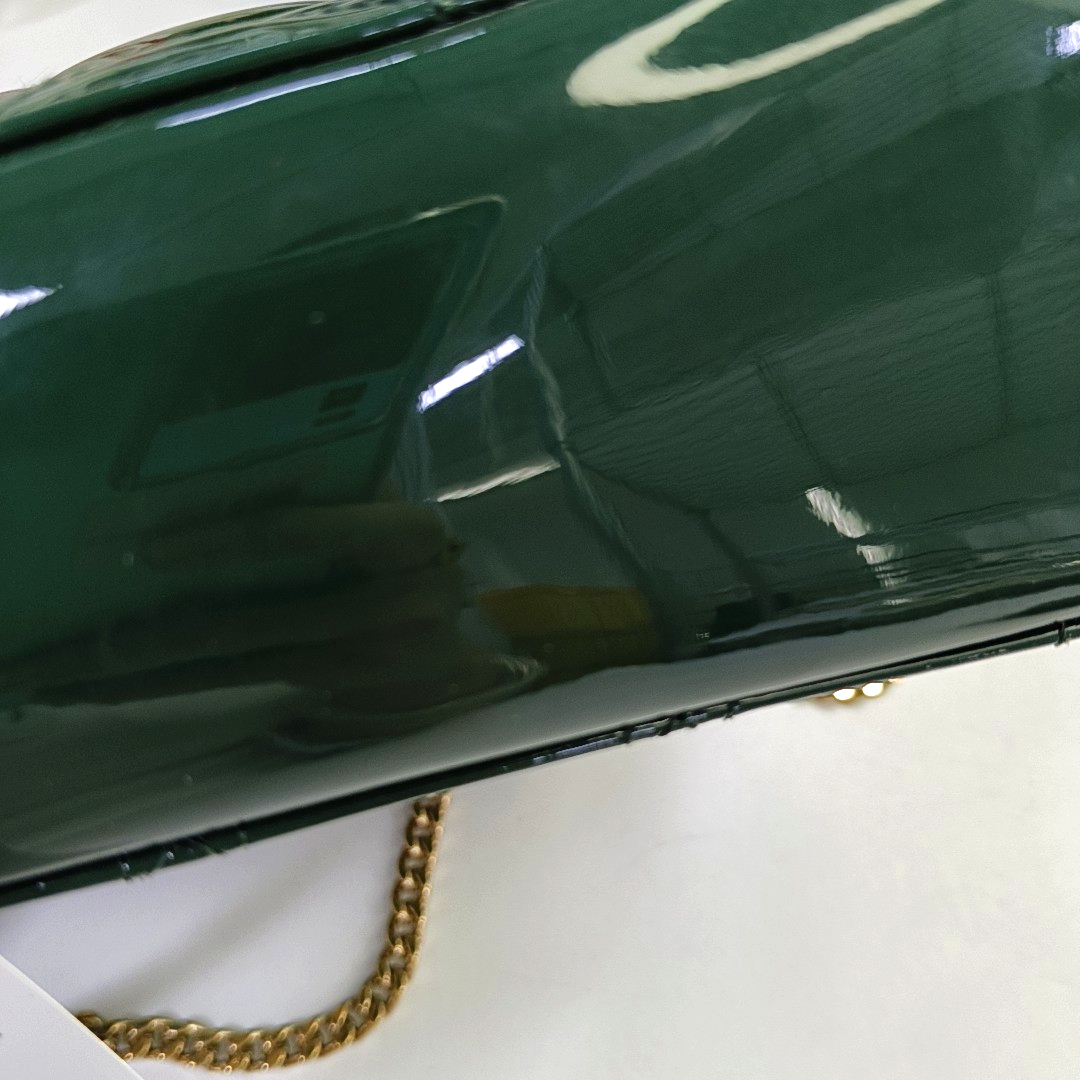 DIOR Lady Dior Mini Dark Green Patent Lamb Skin Quilted Diaper Bag 3-Compartment Shoulder Bag Tote Bag Crossbody Bag Golden Hardware Removable Strap-(SKU)-947300557
