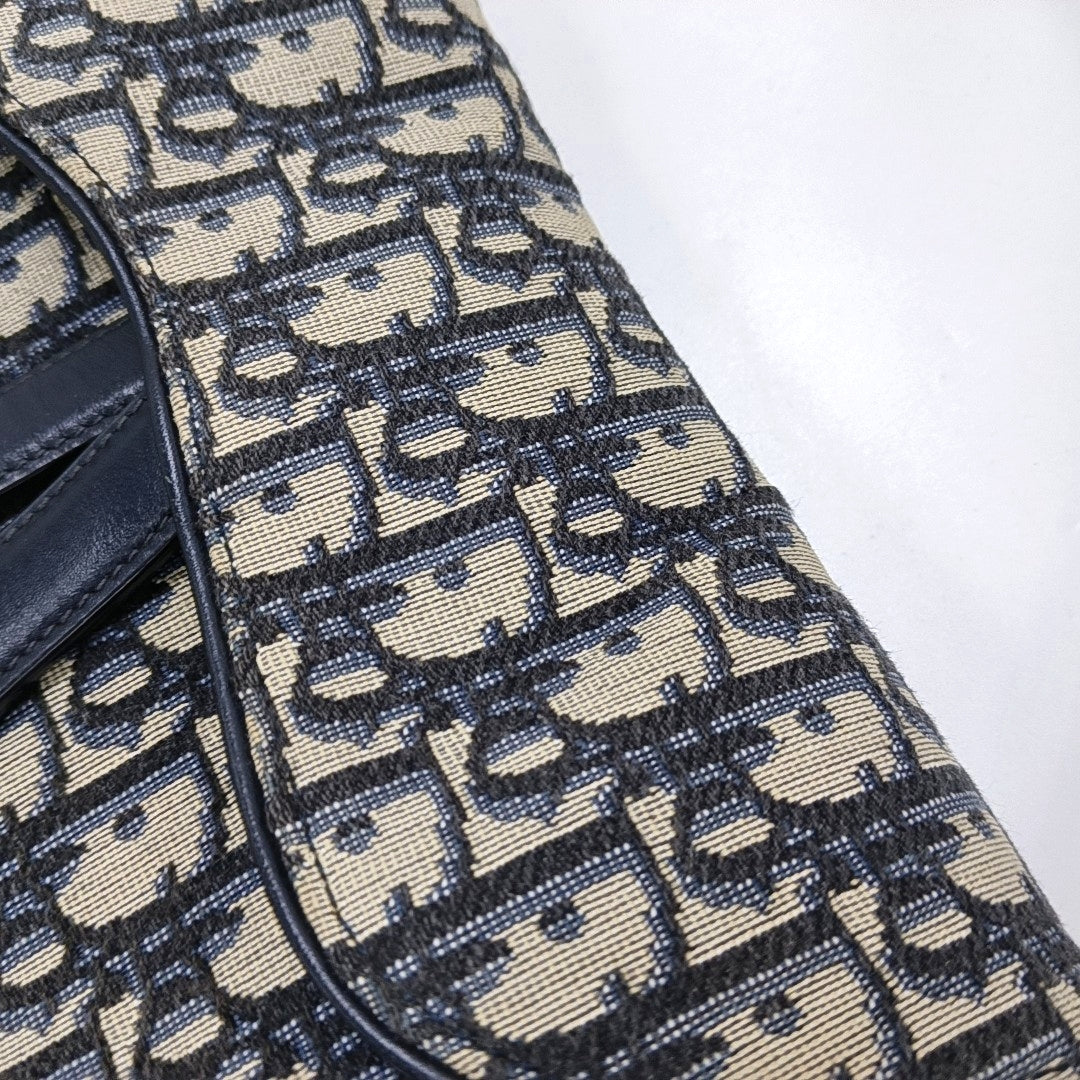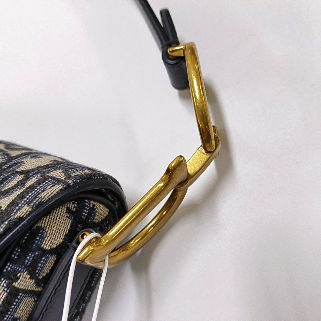 DIOR Saddle Small Size Blue Canvas Monogram Saddle Bag Single Shoulder Bag Golden Hardware-(SKU)-966733387