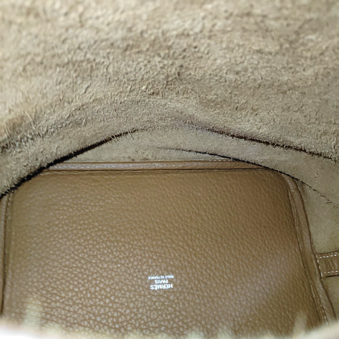 HERMÈS Picotin Lock 22 Cognac Brown Clemence Leather Market Basket Tote Bag with Silver Hardware X-(SKU)-969778968