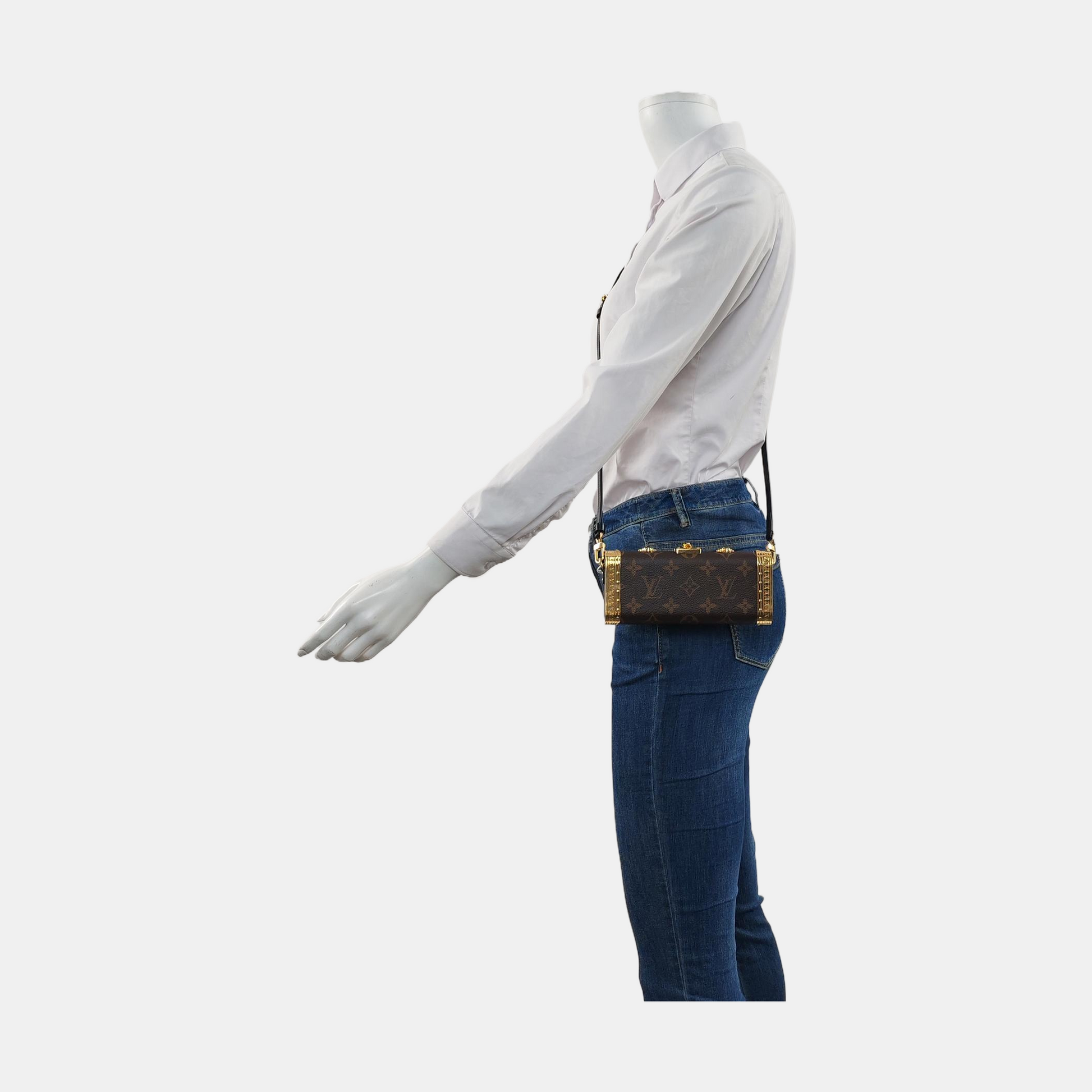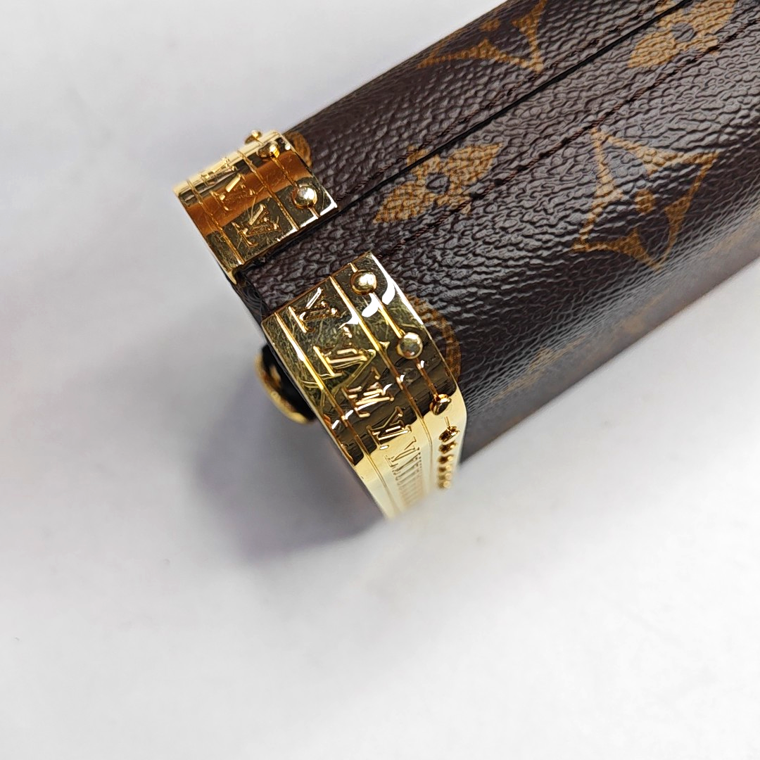 LOUIS VUITTON VANITY CASE Brown Coated Canvas Monogram Crossbody Shoulder Bag Tote Bag Gold Hardware 2 Removable Shoulder Straps-(SKU)-957302844