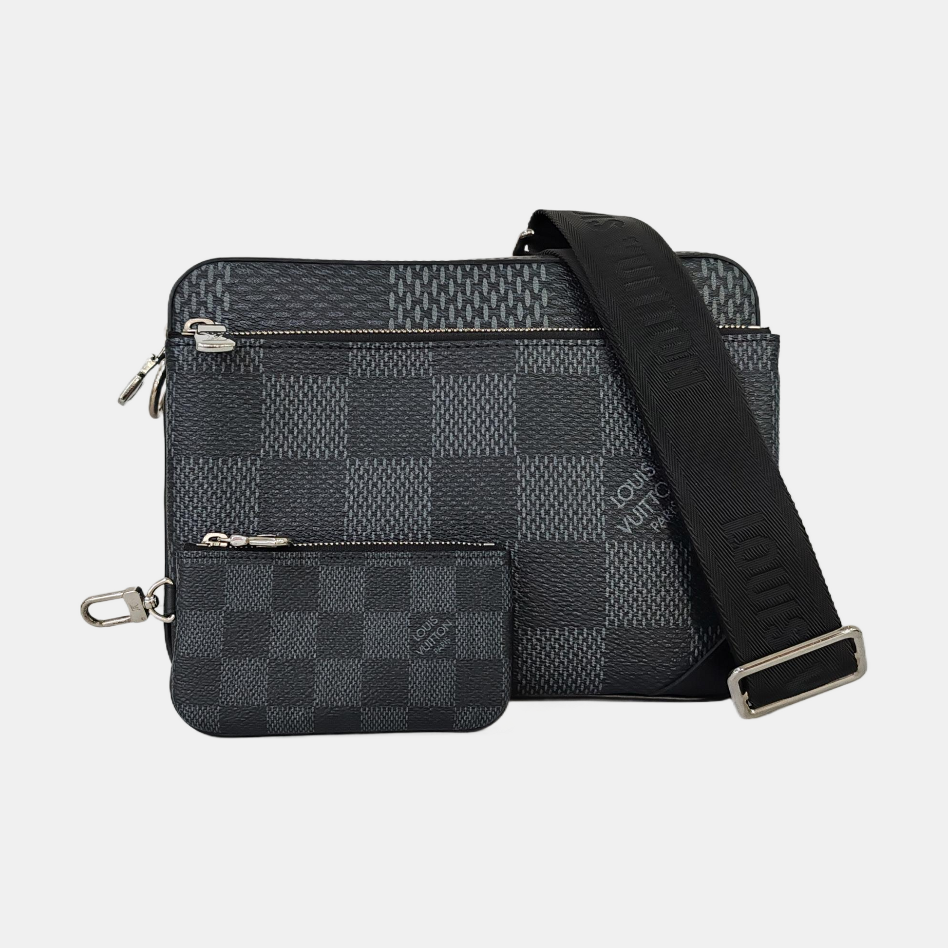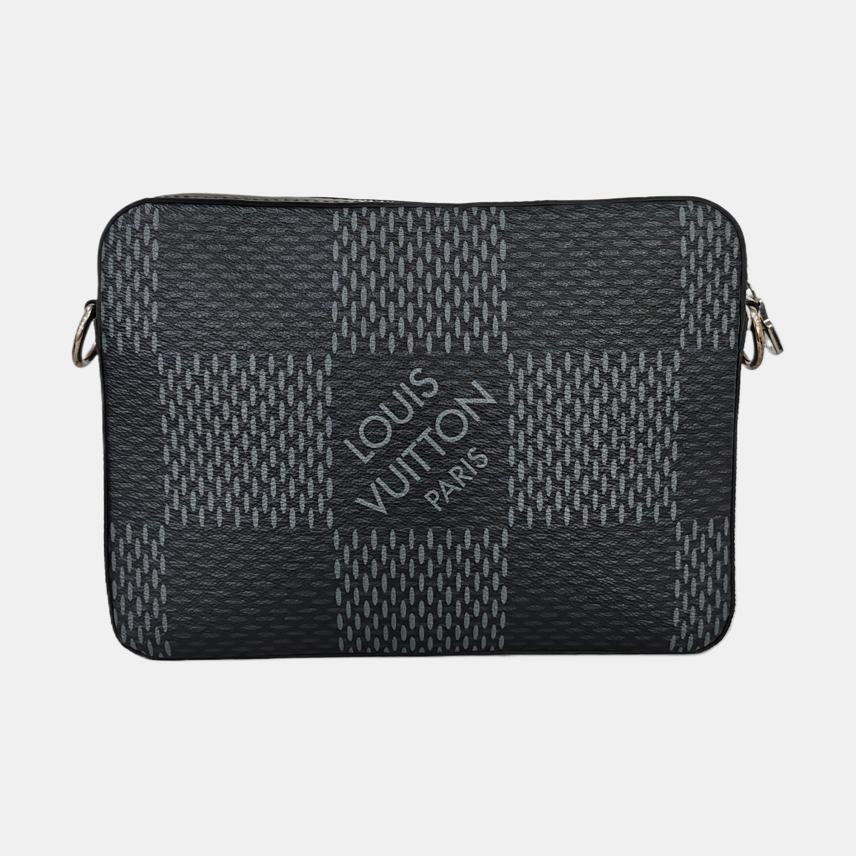 LOUIS VUITTON TRIO Gray Calfskin Monogram Checkerboard 3-in-1 Shoulder Bag Tote Bag Silver Hardware Removable Strap-(SKU)-962206815