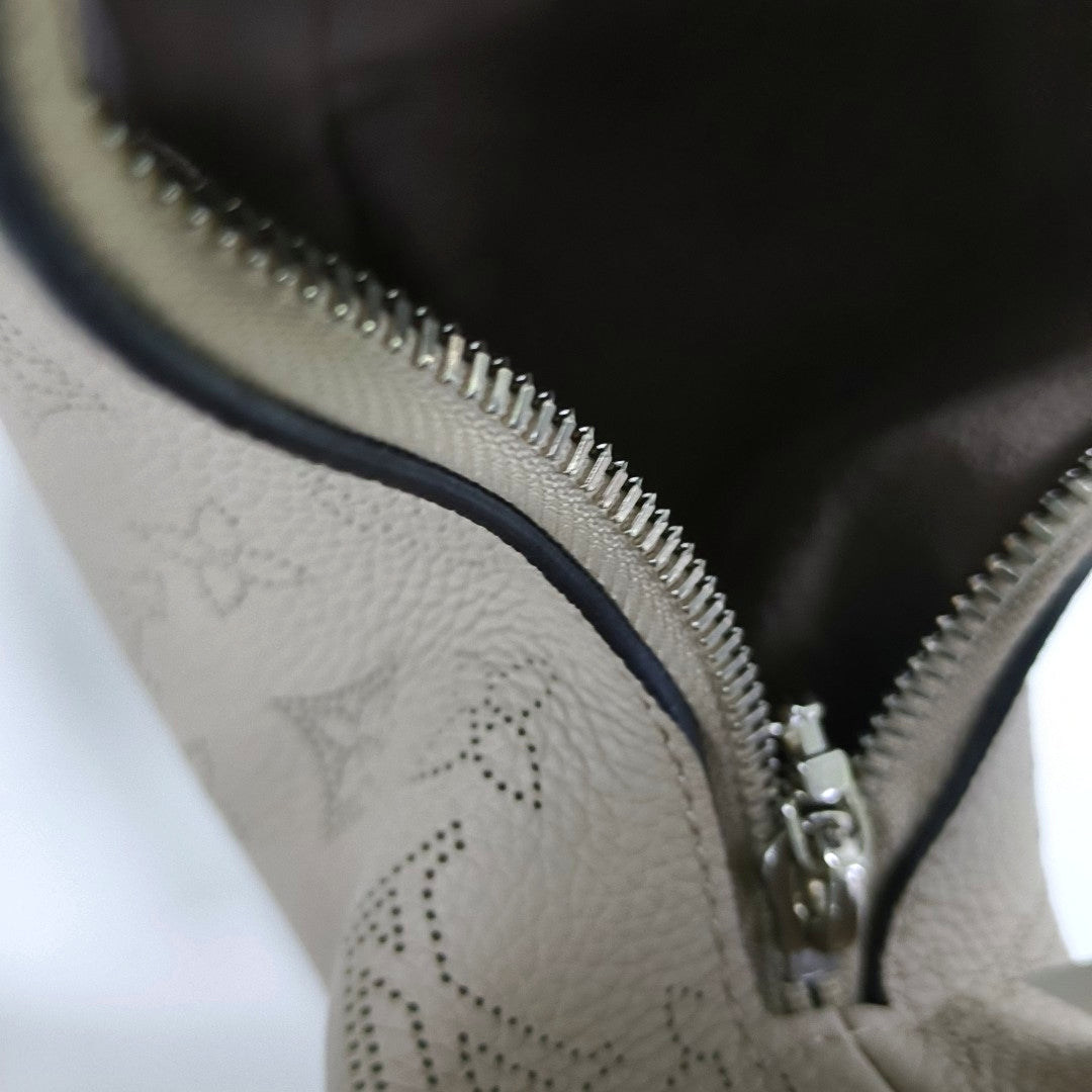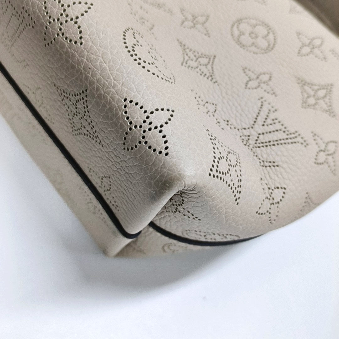 LOUIS VUITTON WHY KNOT Small size grey leather monogram perforated shoulder bag handbag crossbody bag with silver hardware and removable shoulder strap complete accessories-(SKU)-966742188
