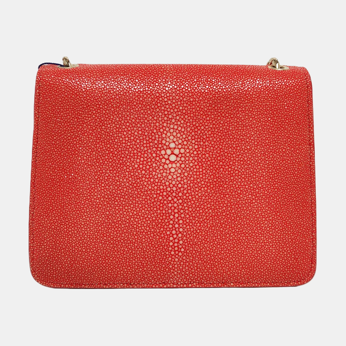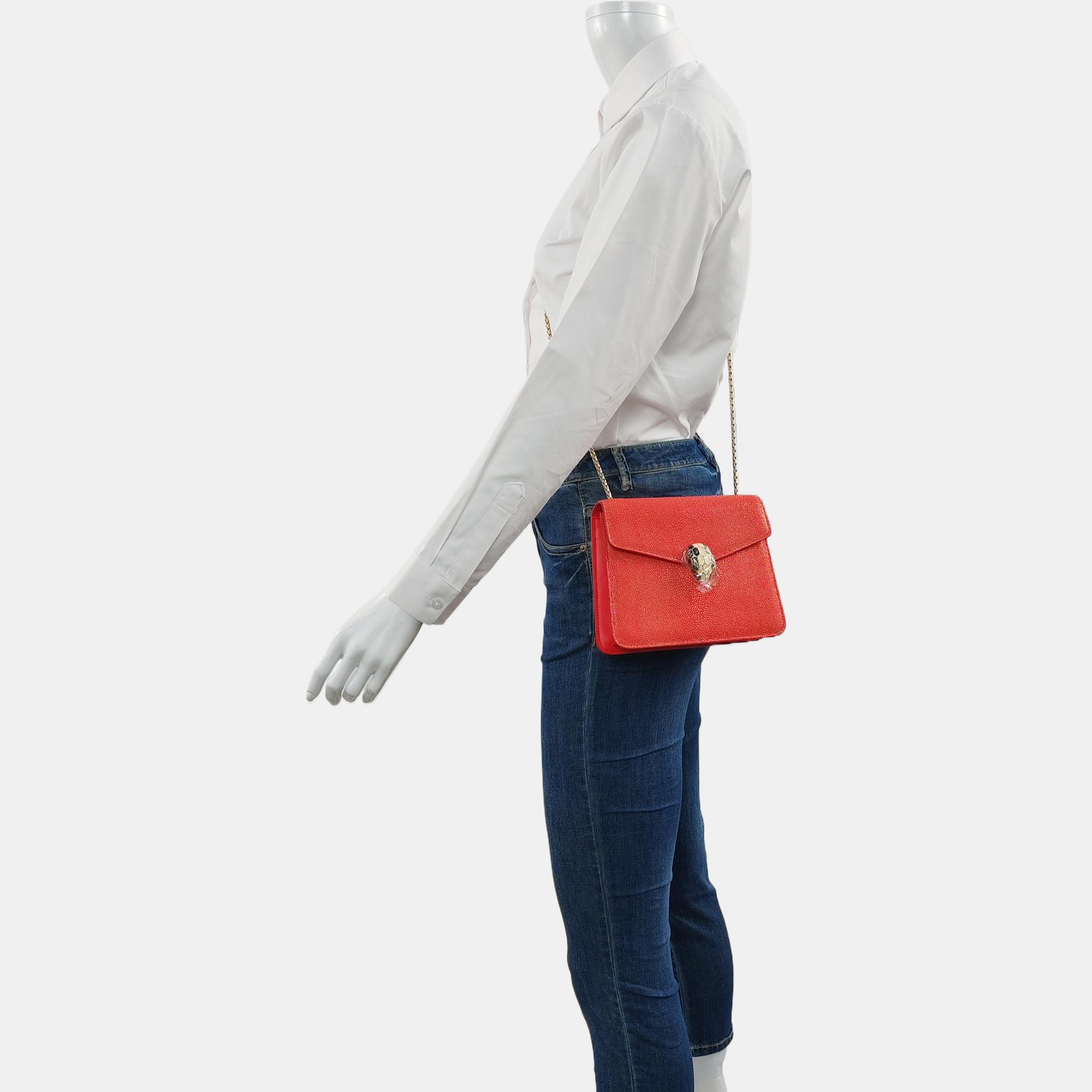 BVLGARI SERPENTI FOREVER Small Red Pearl Fish Skin Snakehead Shoulder Bag Crossbody with Multicolor Hardware-(SKU)-968505989