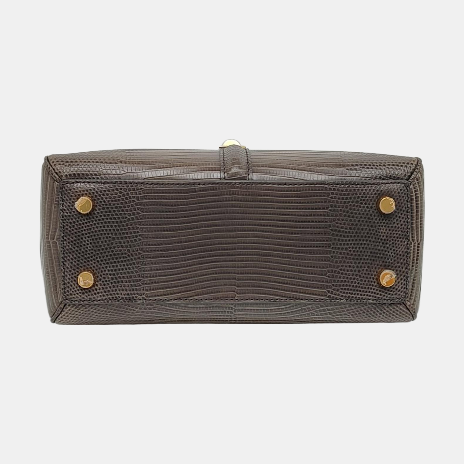 CELINE 16 Small Size Grey Lizard Skin Crossbody Shoulder Bag with Gold Hardware, Detachable Strap, Complete Accessories-(SKU)-966431025