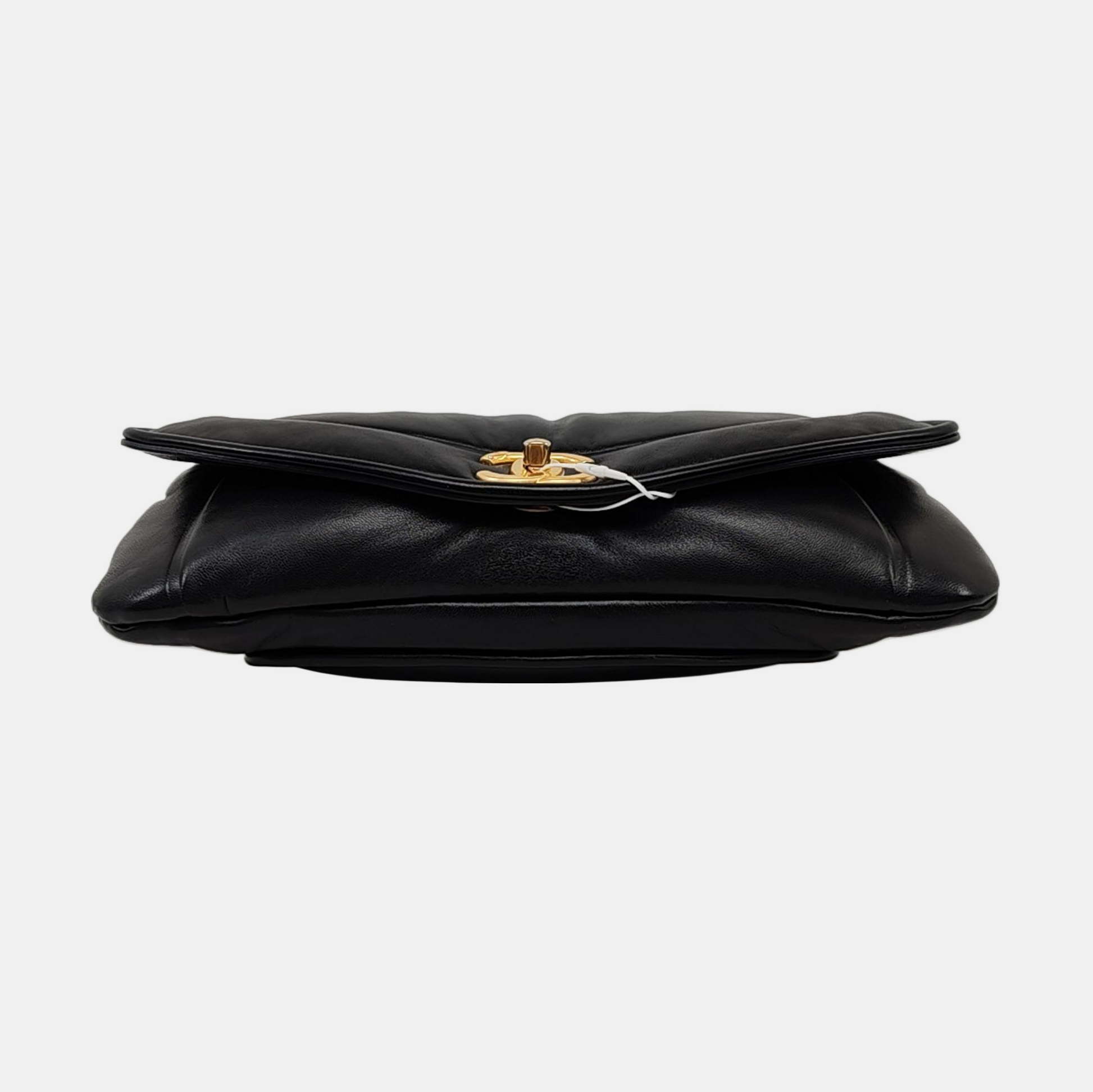 CHANEL VINTAGE PUFFY Black Lamb Leather Handbag with Gold Hardware 28 opening-(SKU)-954943772