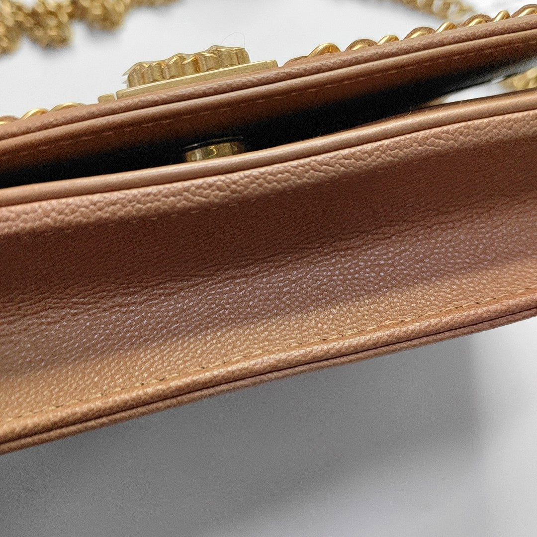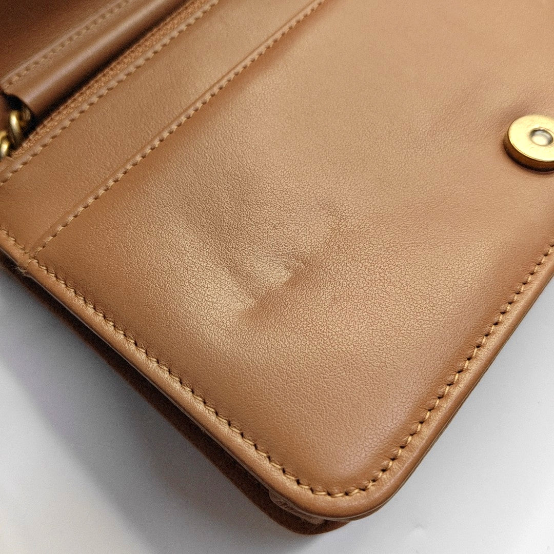 CHANEL BOY CHANEL WOC Brown Calfskin Quilted Crossbody Shoulder Bag with Golden Hardware-(SKU)-968235657