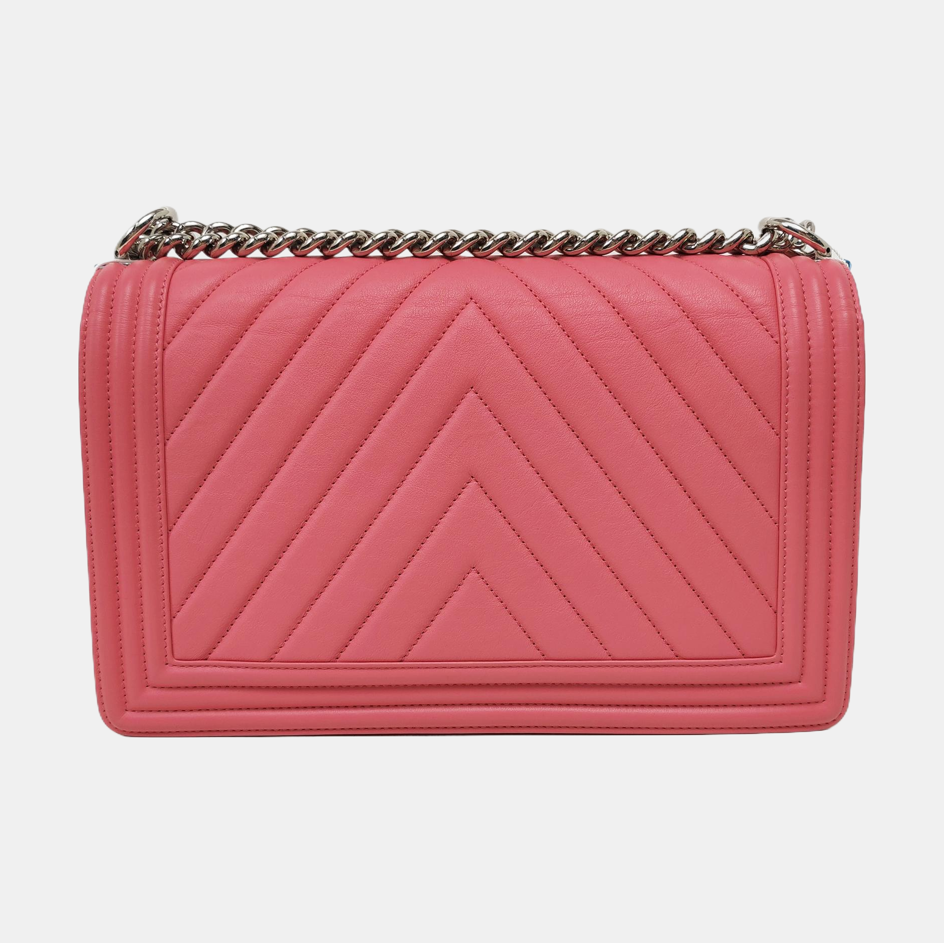CHANEL BOY CHANEL Medium Pink Calfskin Quilted V Crossbody Bag Shoulder Bag Silver Hardware 22 Opening Removable Strap-(SKU)-968899749