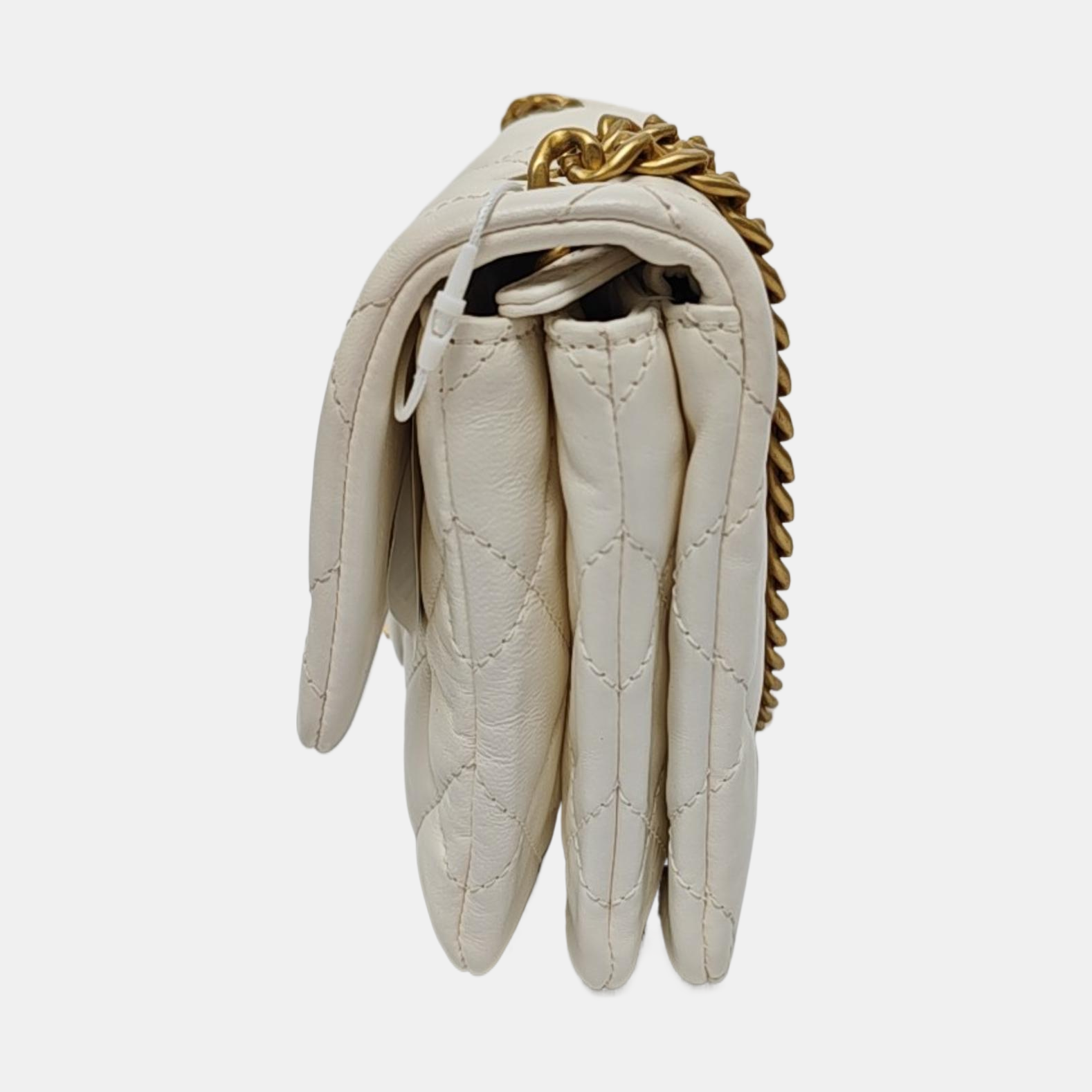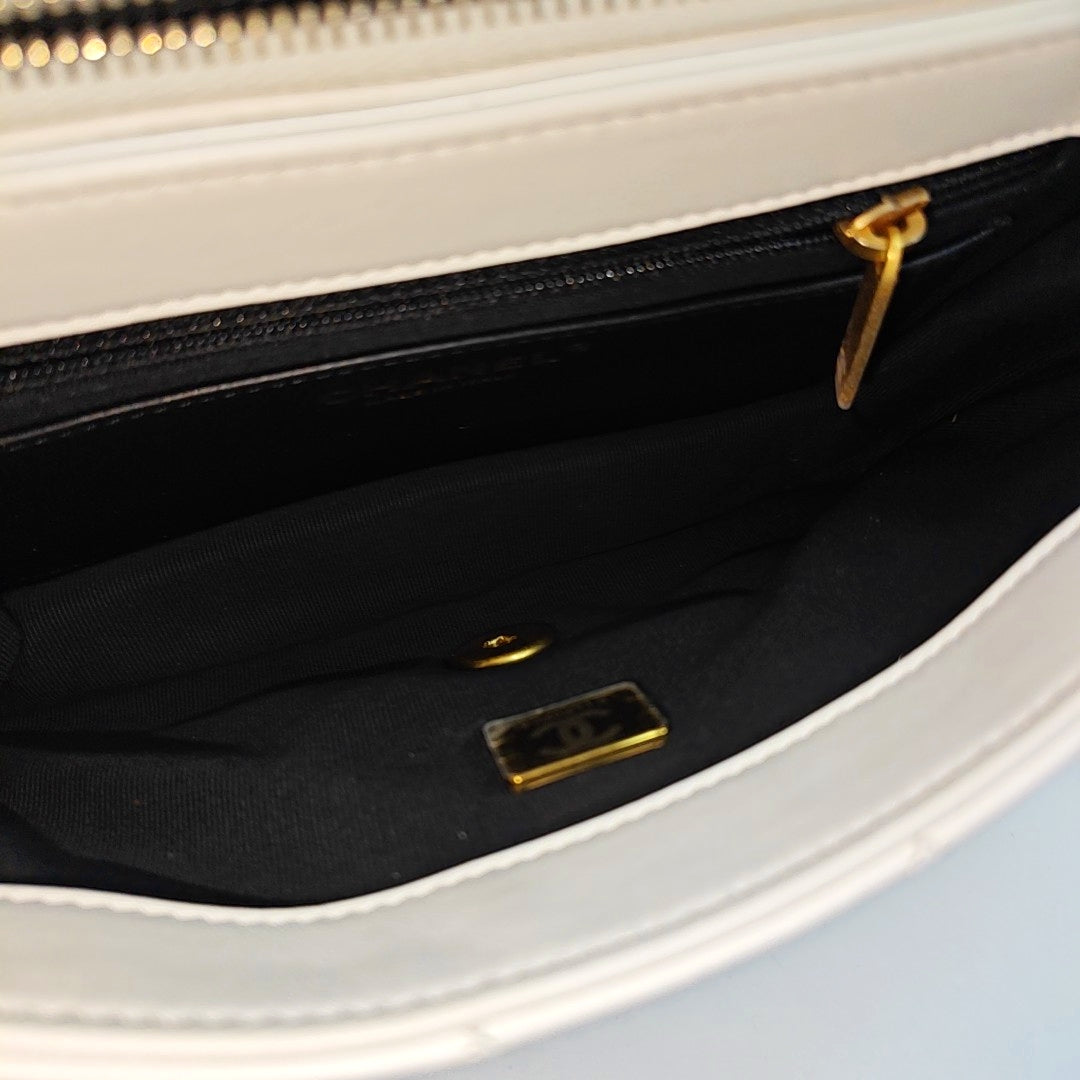 CHANEL CLASSIC FLAP white lambskin quilted diamond pattern crossbody bag shoulder bag gold hardware-(SKU)-969982719