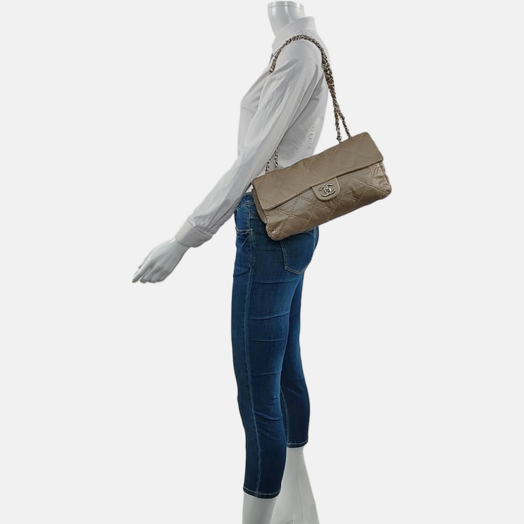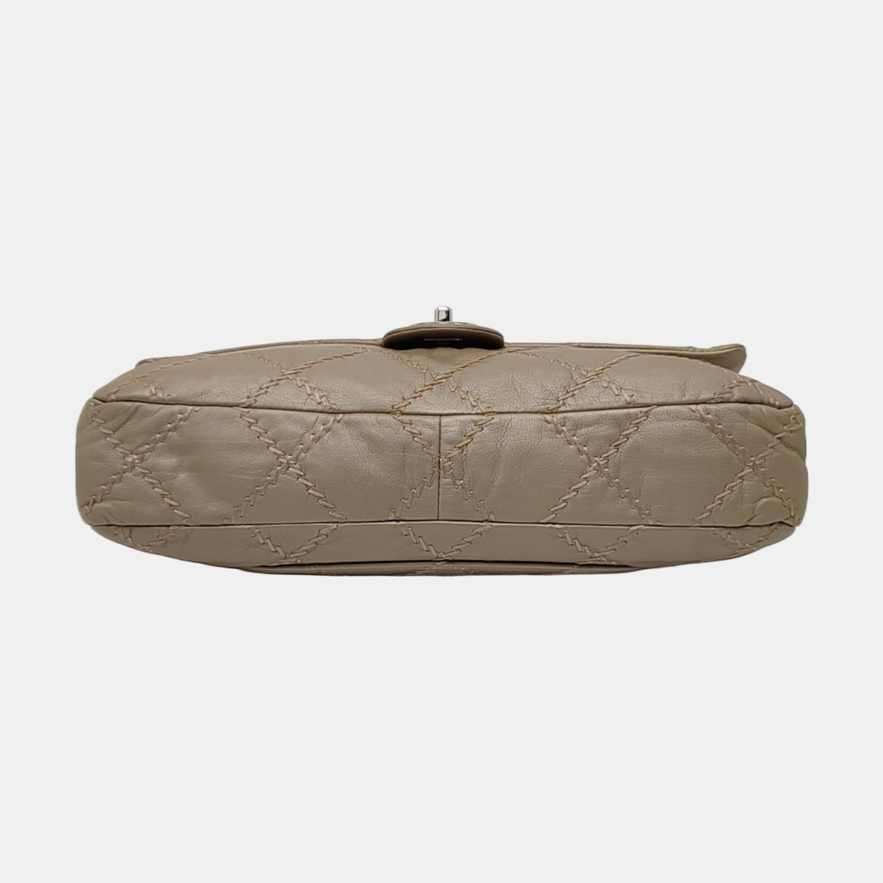 CHANEL WILD STITCH Grey Calfskin Quilted Shoulder Bag, Crossbody Bag with Silver Hardware, 15 compartments-(SKU)-966814468