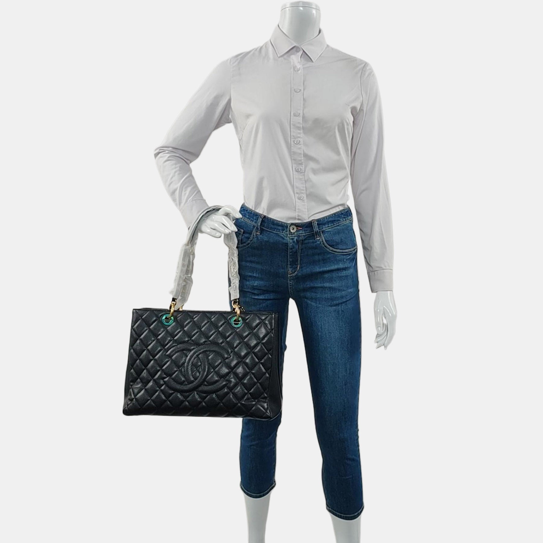CHANEL CHANEL GST Large Black Calfskin Quilted Shoulder Bag Handbag Golden Hardware 15 Clasp-(SKU)-966619492
