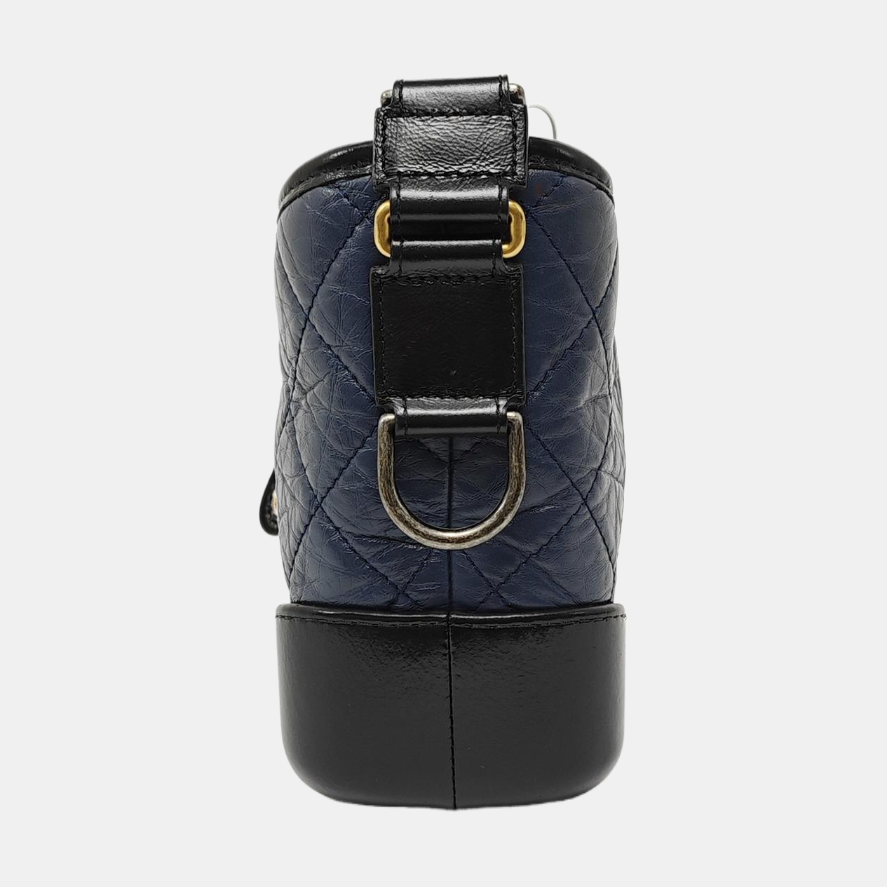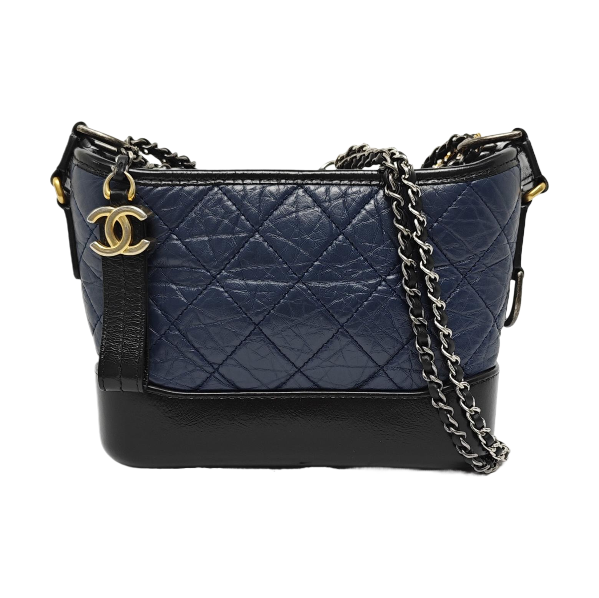 CHANEL GABRIELLE Small Dark Blue Quilted Leather Hobo Shoulder Bag Crossbody Bag Tote with Detachable Strap-(SKU)-966423917