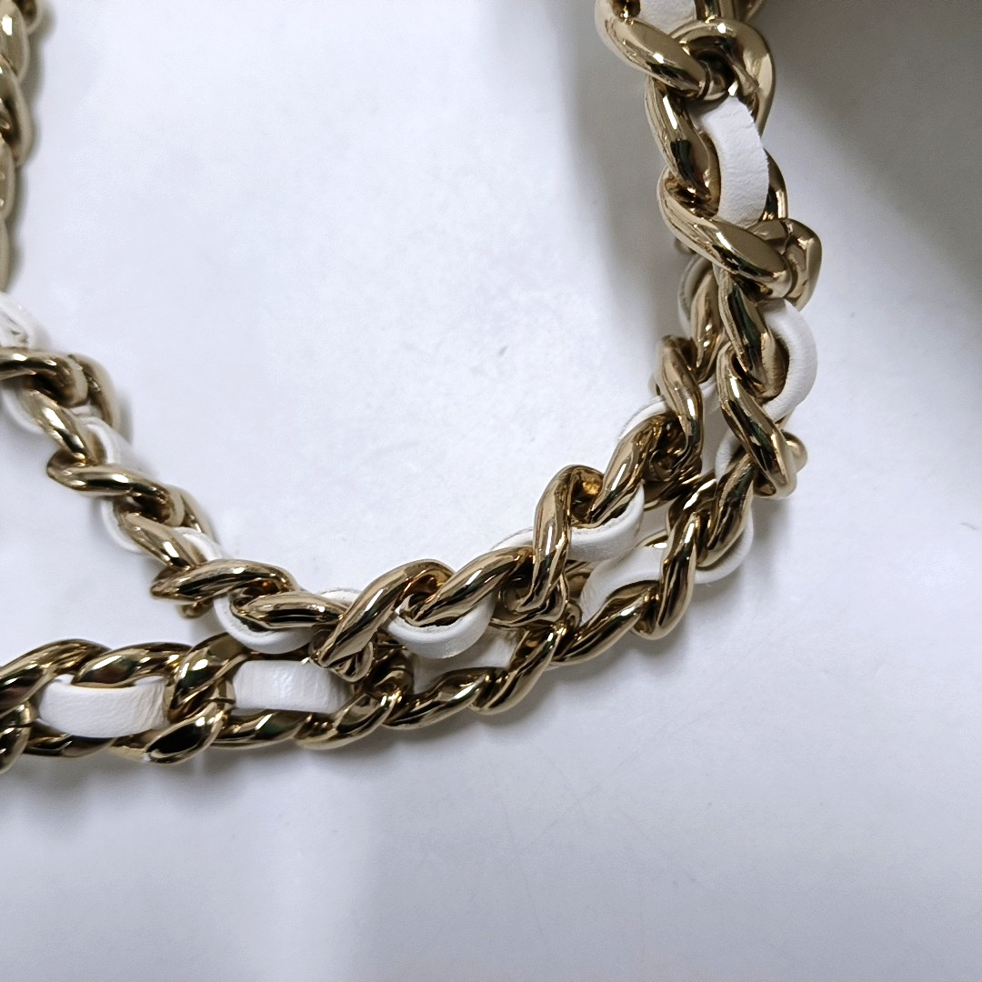 CHANEL ROUND VANITY White Calfskin Quilted Cannage Makeup Bag Shoulder Bag Tote Bag Crossbody Bag 29K Gold Hardware-(SKU)-962516521
