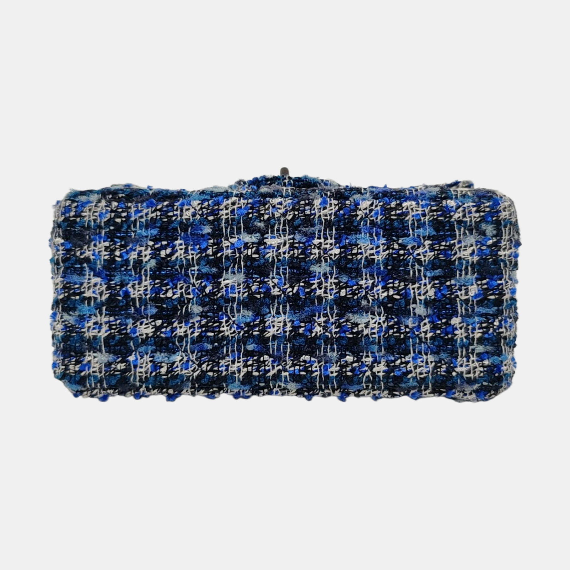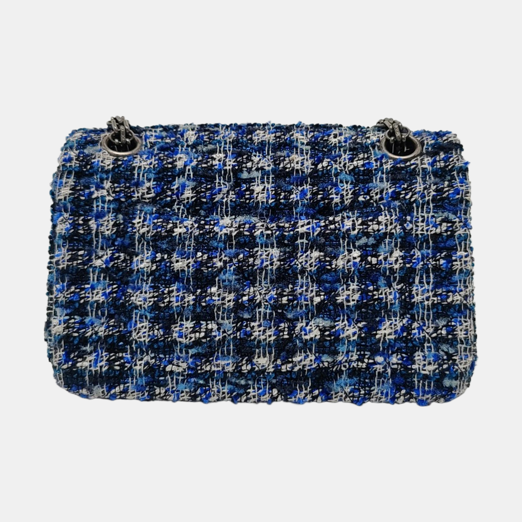 CHANEL 2.55 Mini Blue Tweed Woven Crossbody Shoulder Bag with Black Hardware, 29 Clasps-(SKU)-962059066