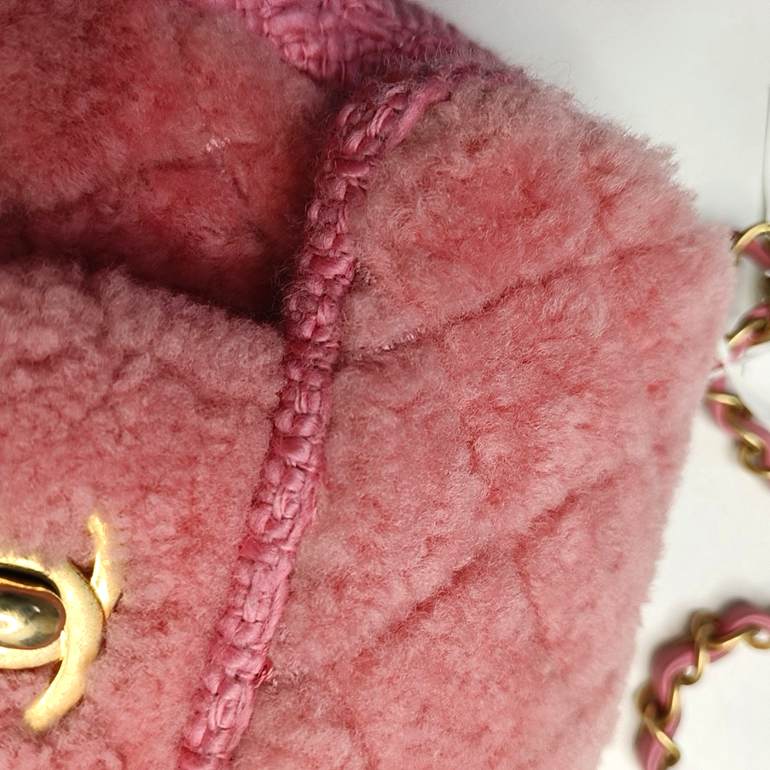 CHANEL CLASSIC FLAP Mini Pink Wool Grained Quilted Flap Bag Crossbody Shoulder Bag with Gold Hardware and 30 Opening-(SKU)-960500213