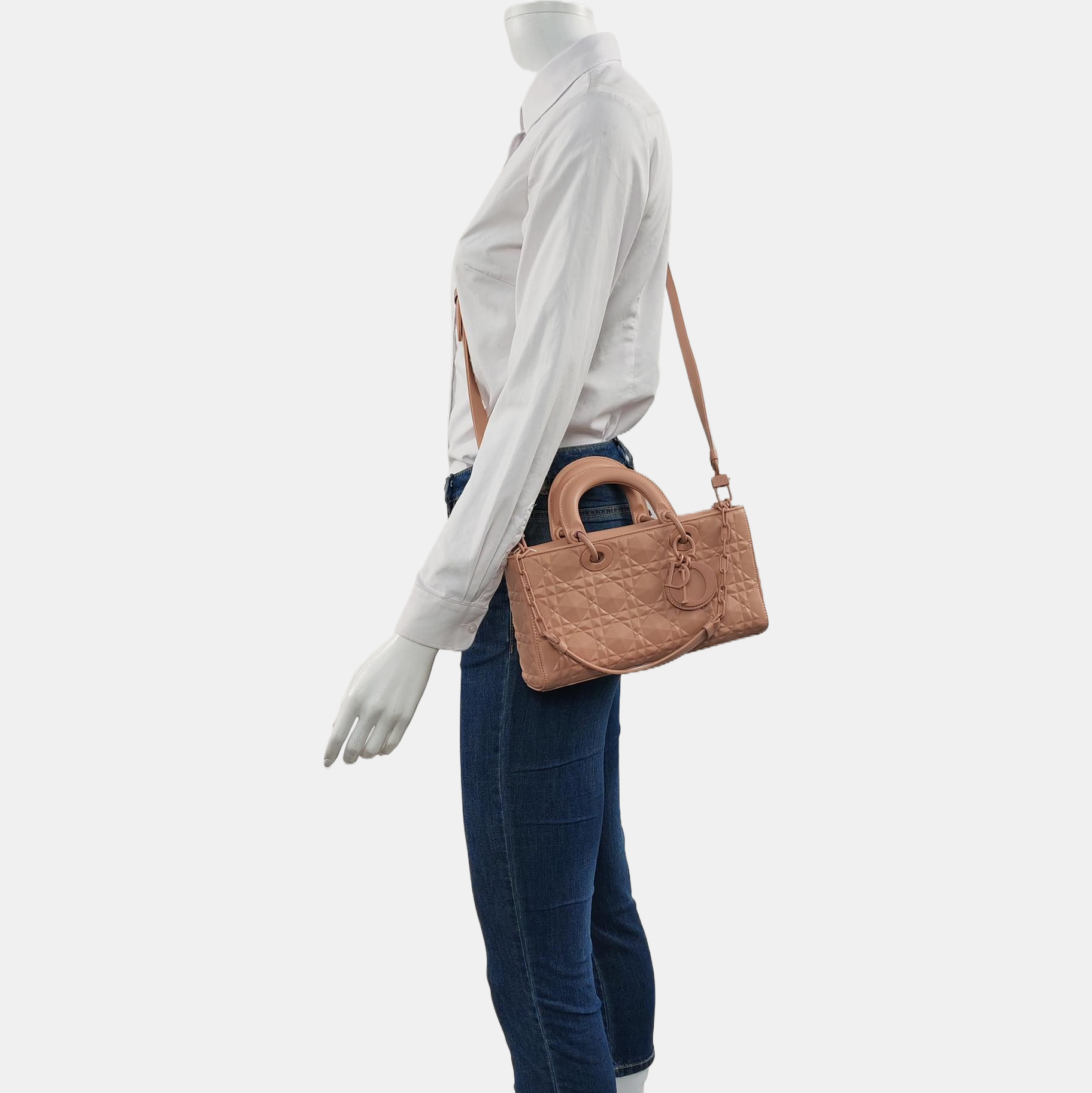 DIOR Lady D-Joy Medium Pink Calfskin Chevron Shoulder Bag, Crossbody Bag with 2 Detachable Straps-(SKU)-964292779