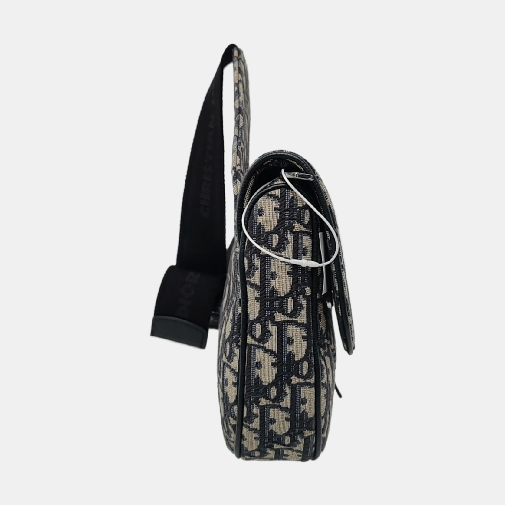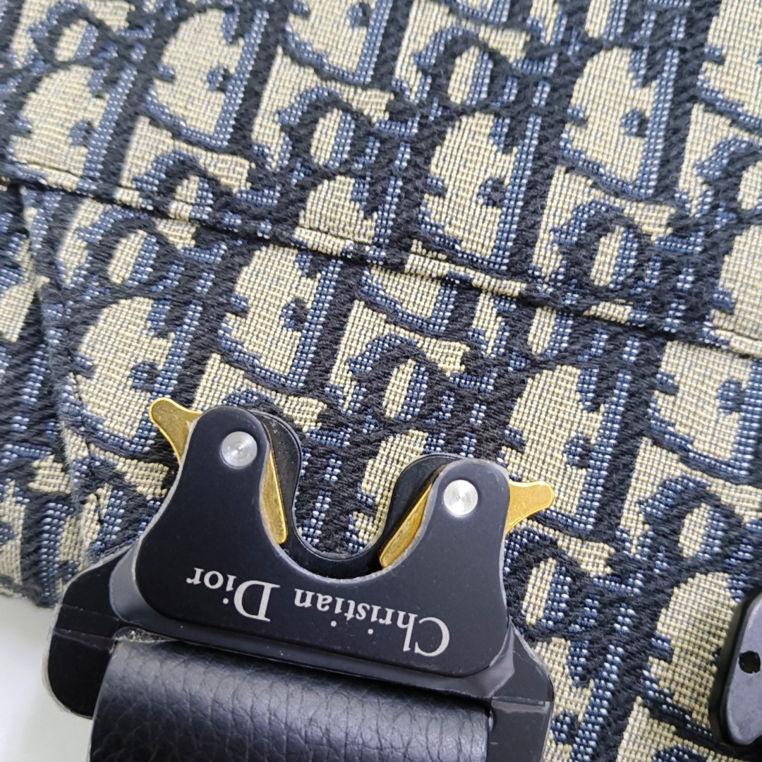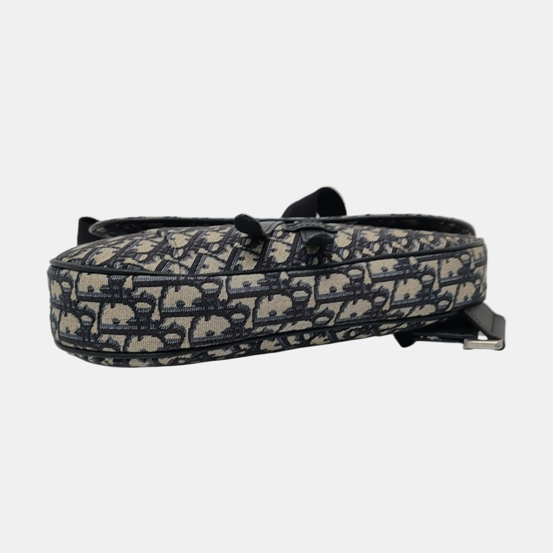 DIOR Saddle Medium Size Blue Canvas Monogrammed Saddle Bag Shoulder Bag Crossbody Bag Silver Hardware-(SKU)-954922052