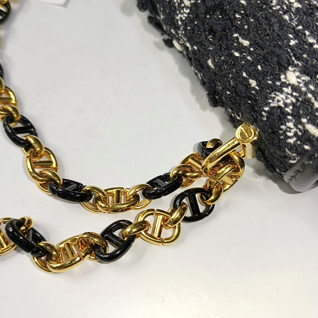 DIOR 30 Montaigne Black Fabric Montaigne Bag Shoulder Bag Crossbody Bag Handbag Golden Hardware Removable Strap-(SKU)-958282037