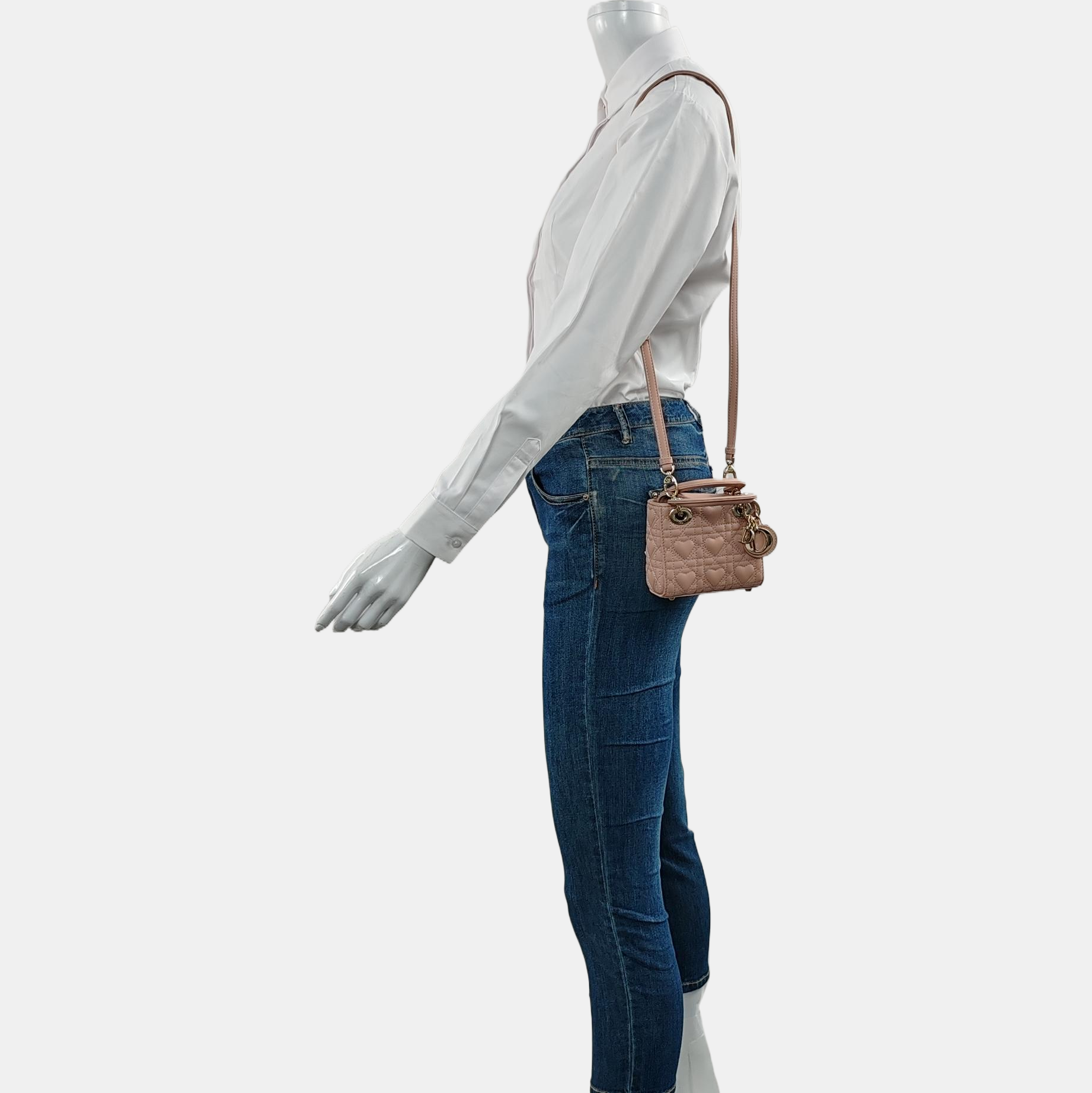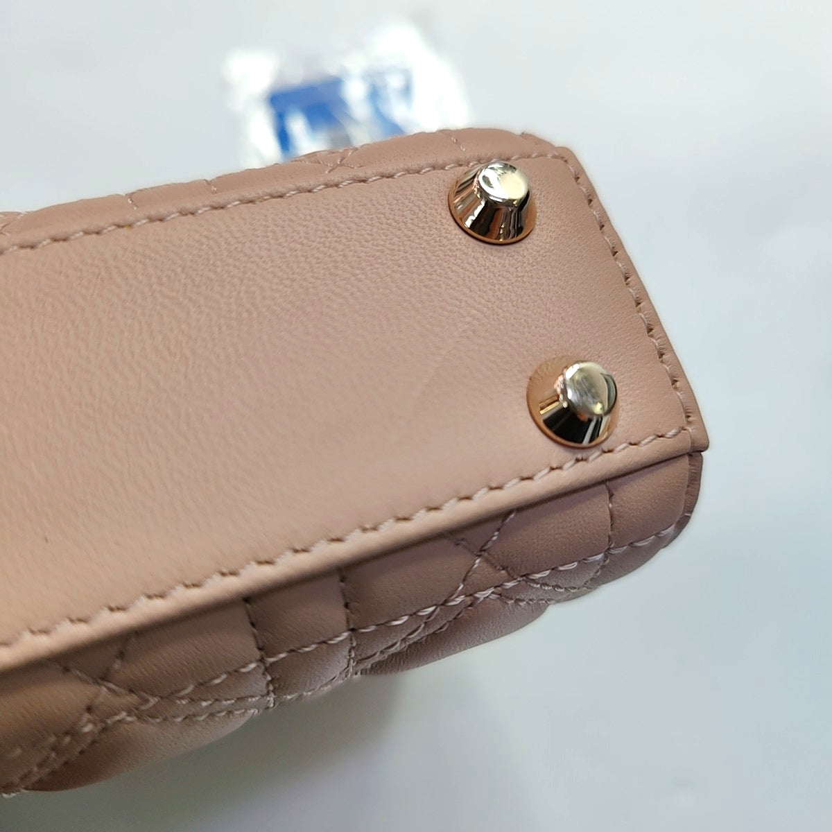 DIOR Lady Dior Super Mini Pink Lamb Skin Quilted Diaper Bag 3-Compartment Shoulder Bag Tote Bag Crossbody Bag Golden Hardware Removable Strap-(SKU)-968903850