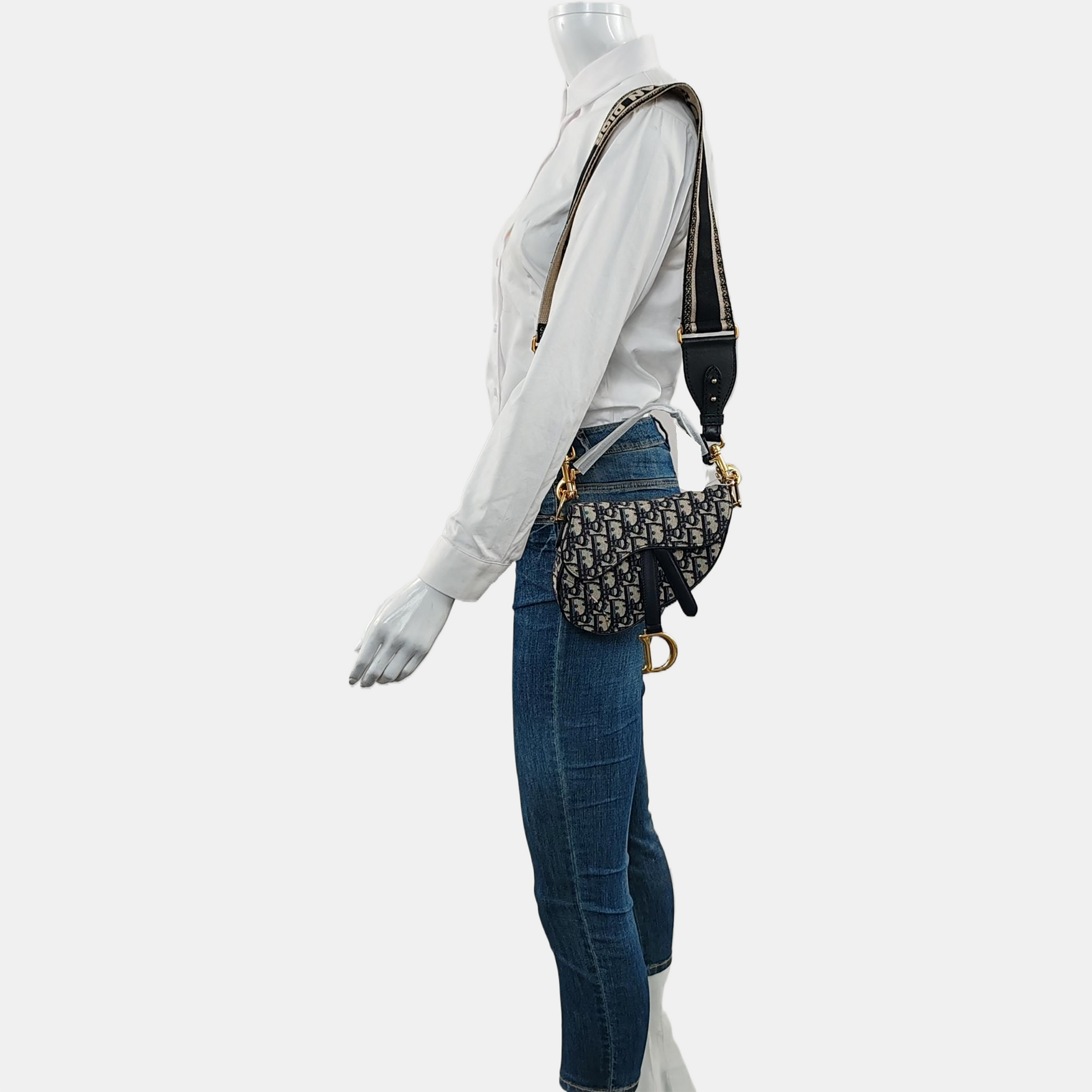 DIOR Saddle Blue Canvas Monogram Saddle Bag Handbag Shoulder Bag Crossbody Bag with Gold Hardware Removable Strap-(SKU)-969434186
