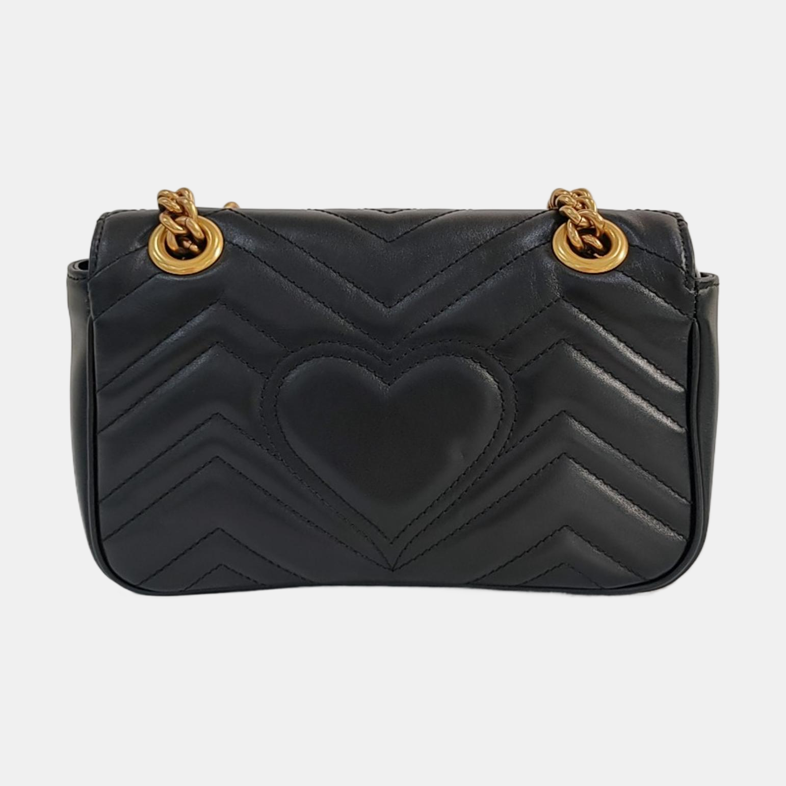 GUCCI GG Marmont Small Black Quilted Leather Shoulder Bag Crossbody Bag with Gold Hardware-(SKU)-968408003
