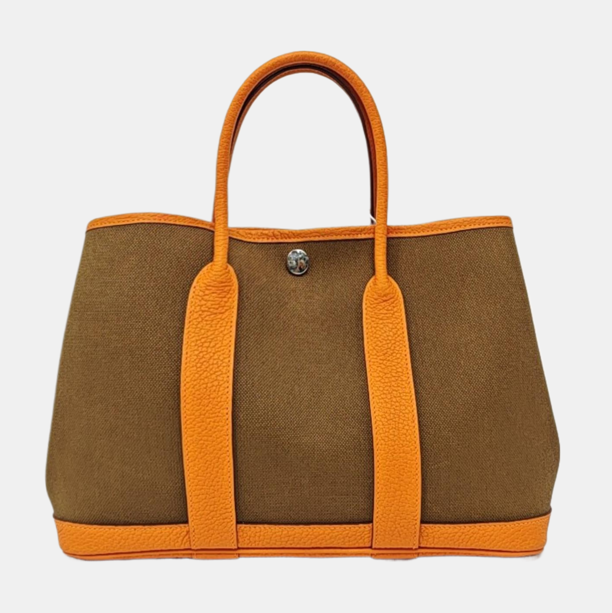 HERMÈS Garden Party 30 Chestnut Canvas Garden Bag with Silver Hardware-(SKU)-968662109