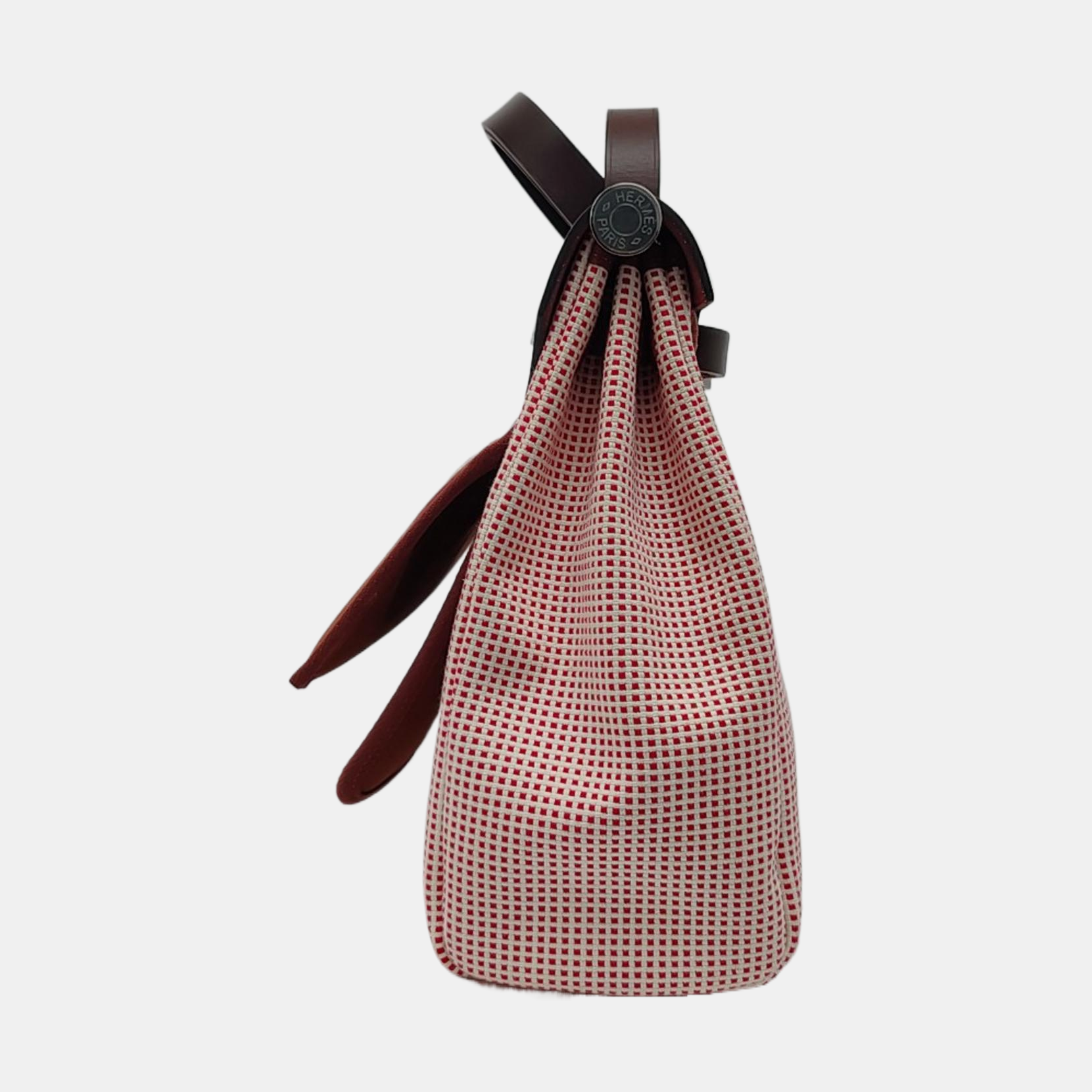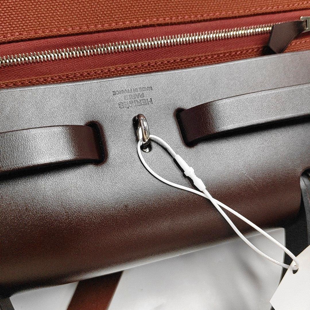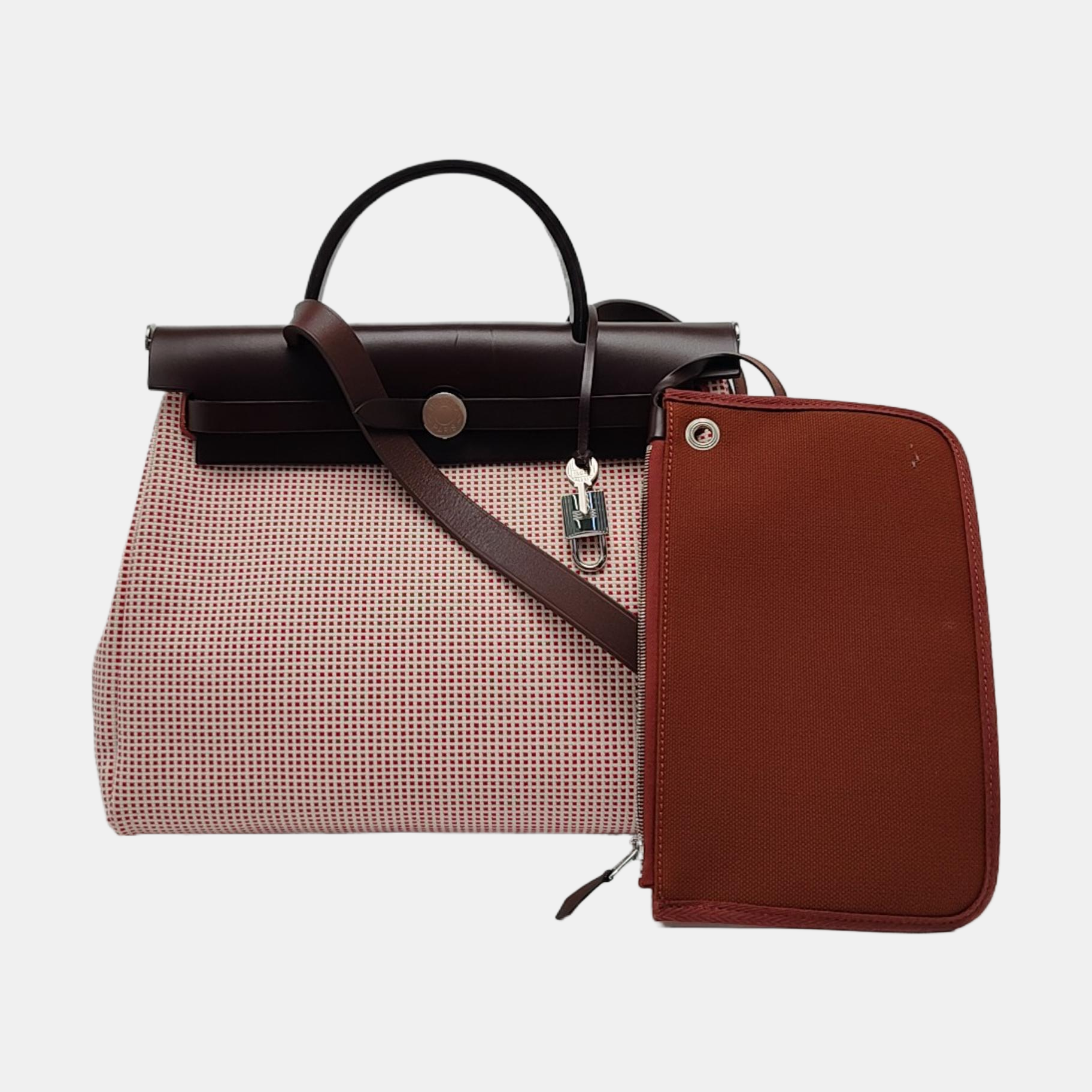HERMÈS Herbag 31 Patchwork Canvas Woven Shoulder Bag Crossbody Handbag with Silver Hardware, Z Stamp, and Pocket-(SKU)-967802237