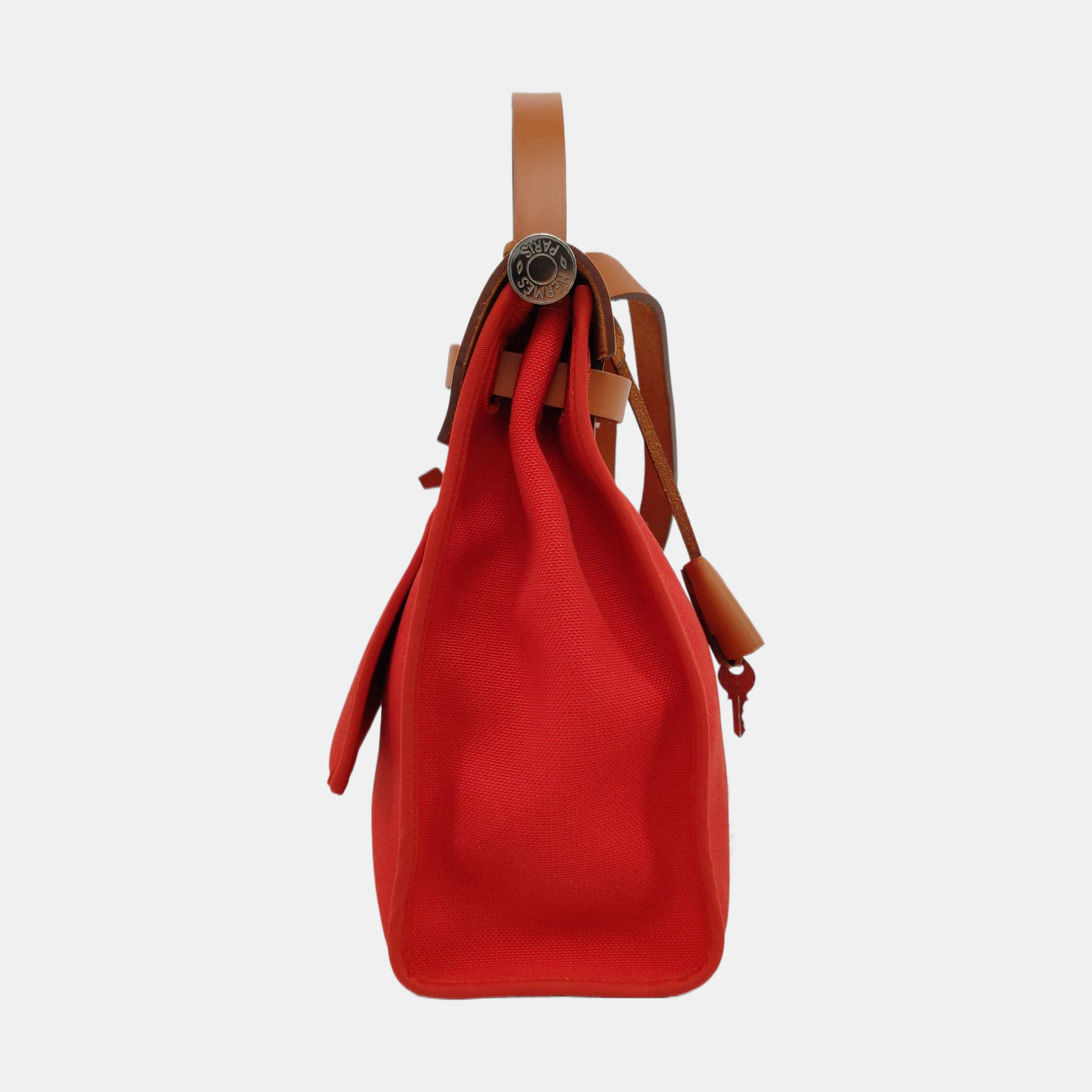 HERMÈS Herbag 31 National Flag Red Canvas Crossbody Tote Bag Single Shoulder Bag Silver Hardware A Removable Strap-(SKU)-961466462