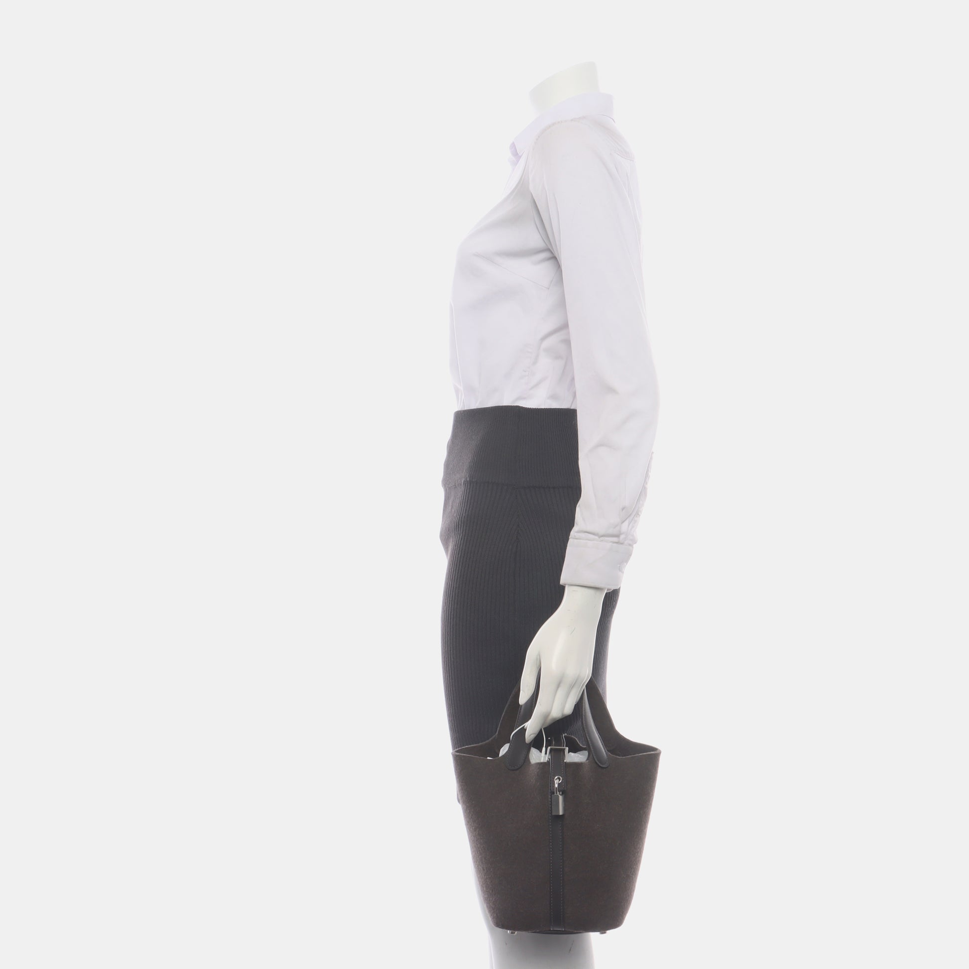HERMÈS Picotin Lock 18 Taupe Grey Felt Tote Bag with Silver Hardware-(SKU)-934996472