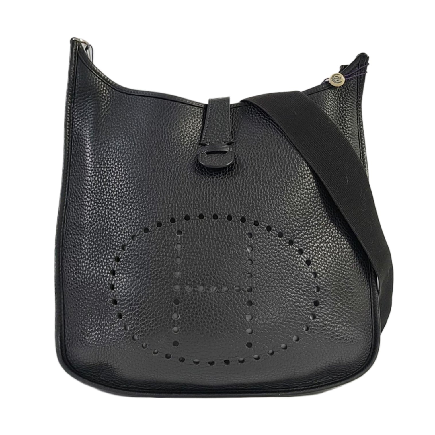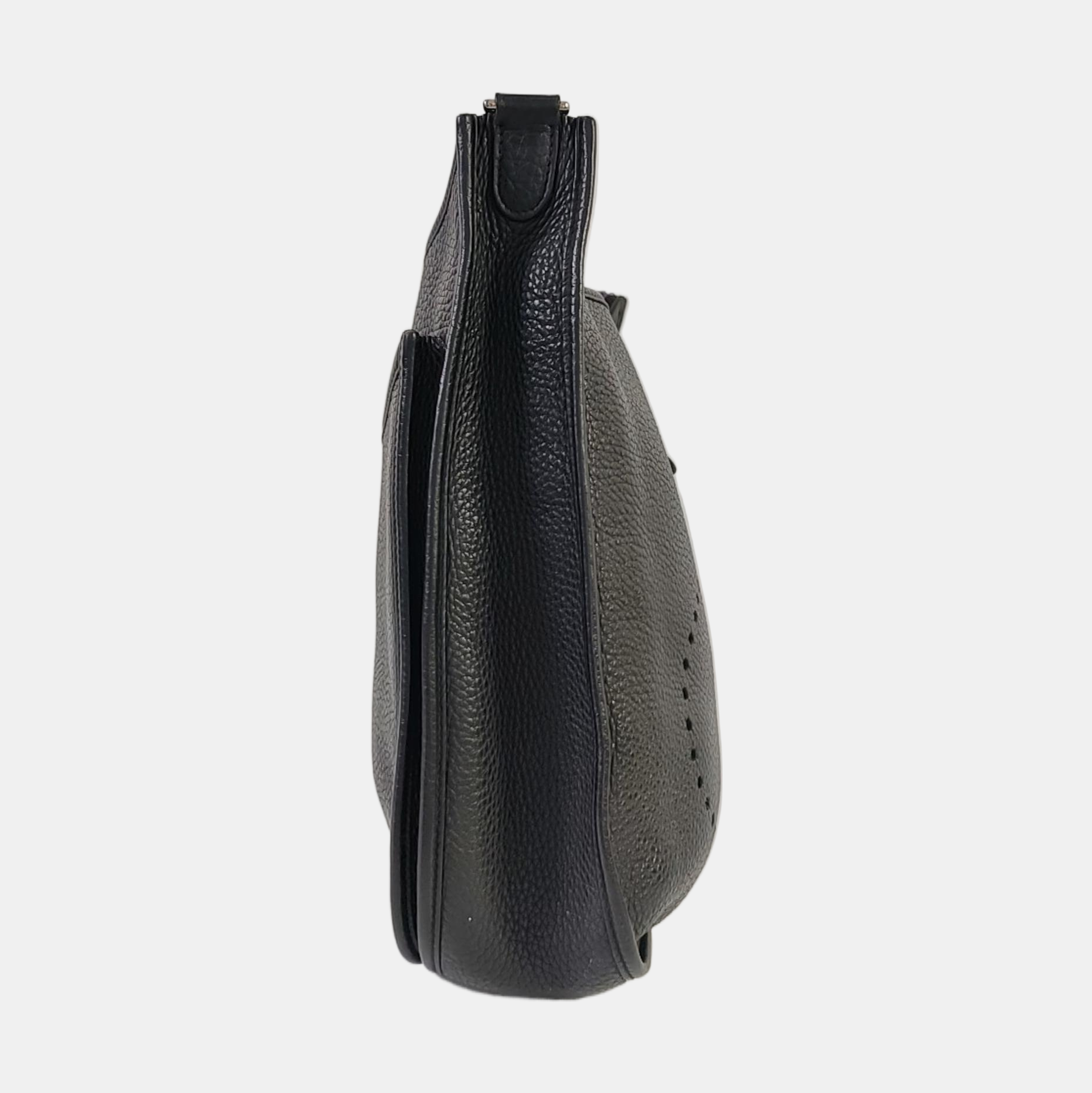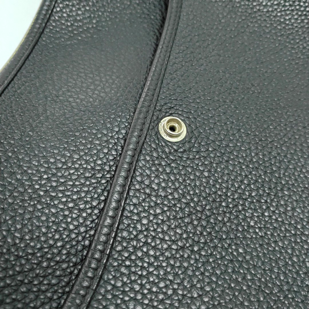 HERMÈS Evelyne GM Black Clemence Leather Shoulder Bag with Silver Hardware-(SKU)-964794155