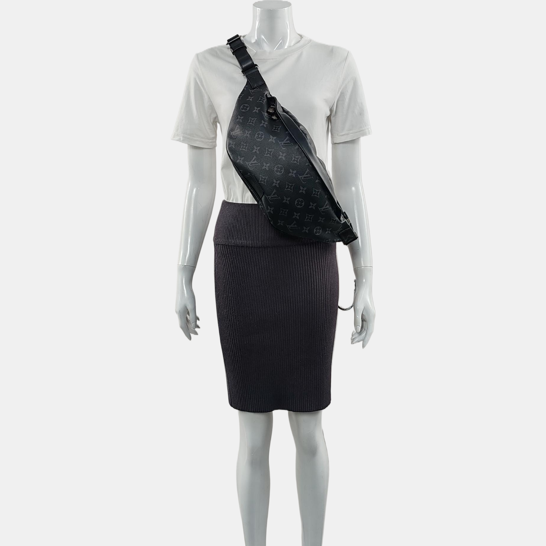 LOUIS VUITTON DISCOVERY Small Black Coated Canvas Vintage Fanny Pack Crossbody Bag Silver Hardware-(SKU)-968423625