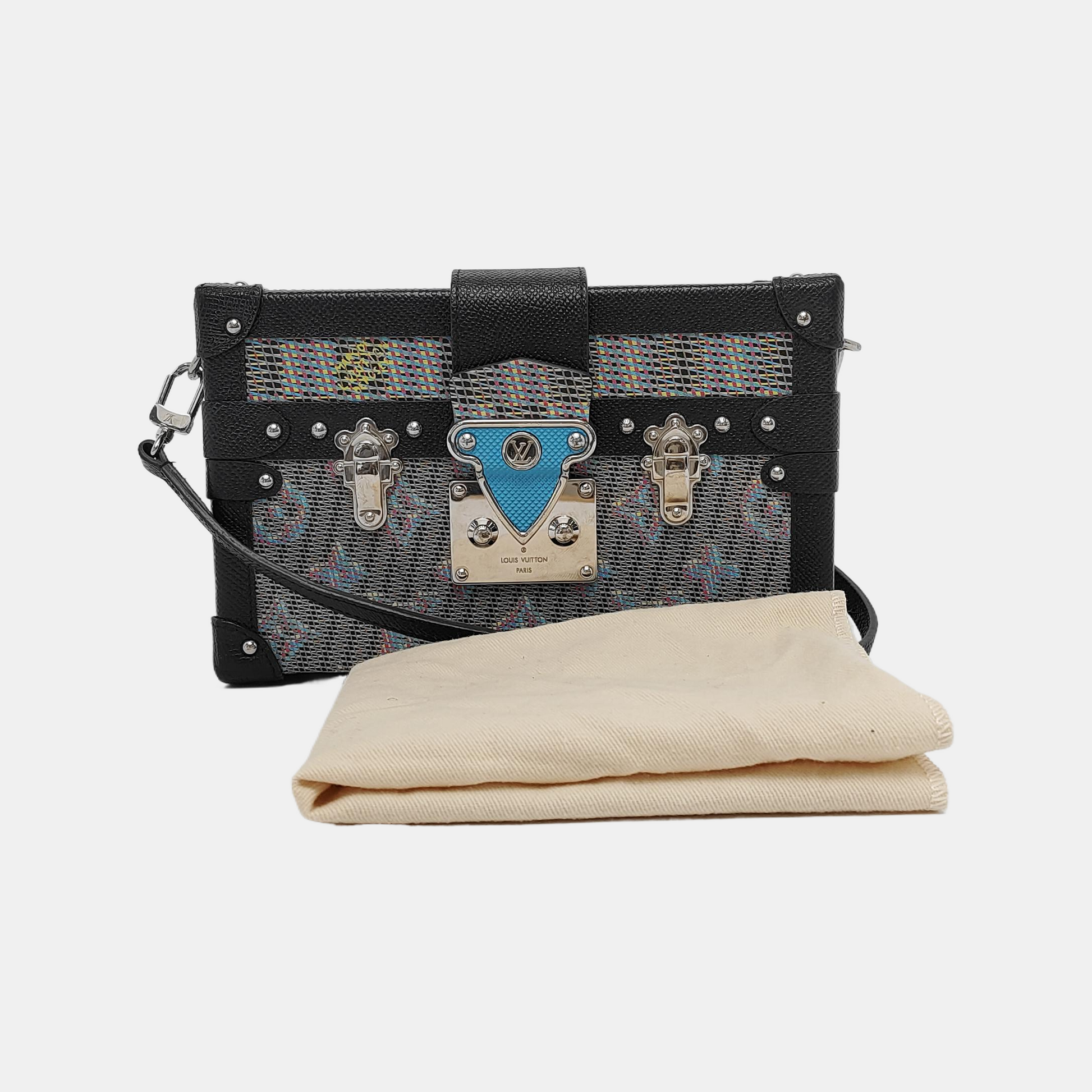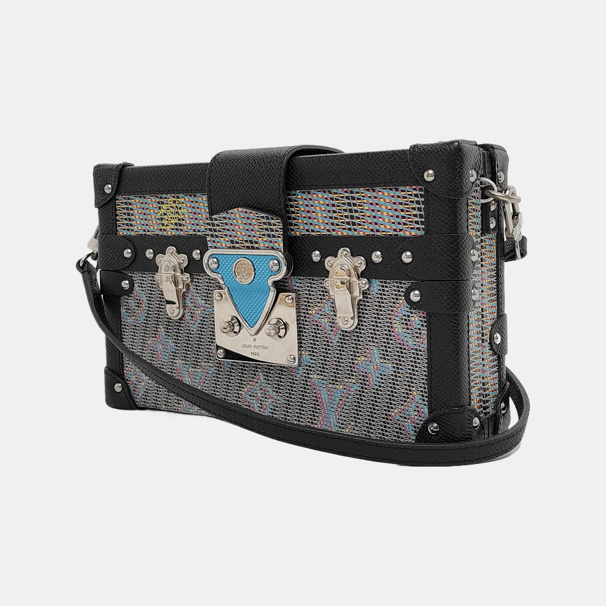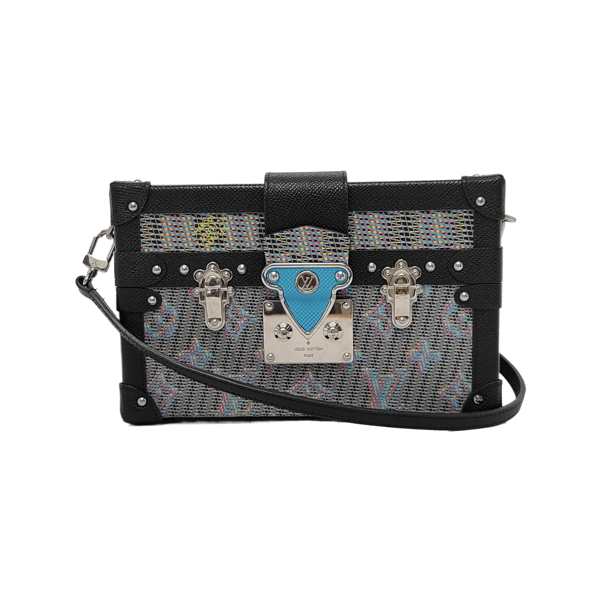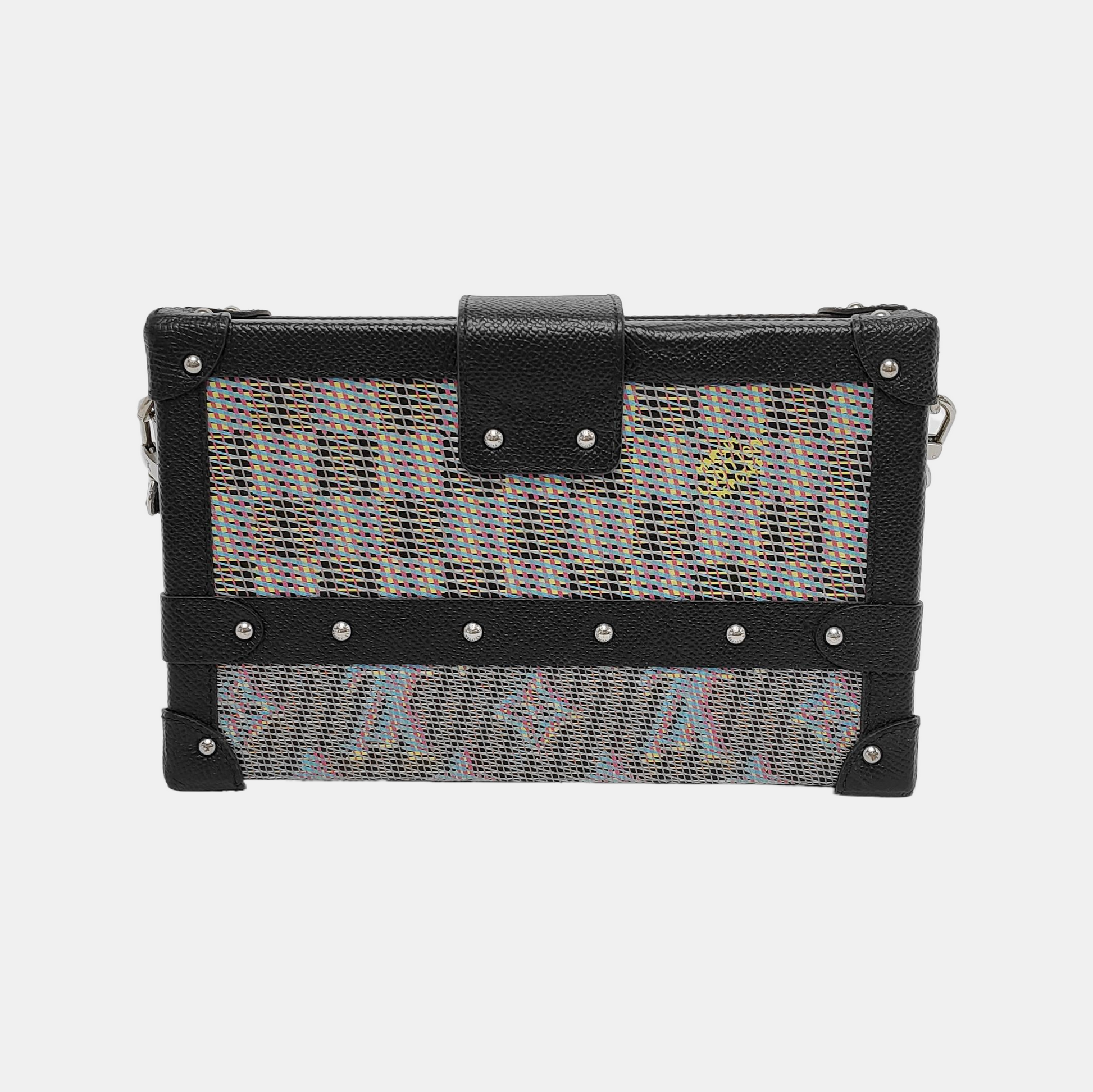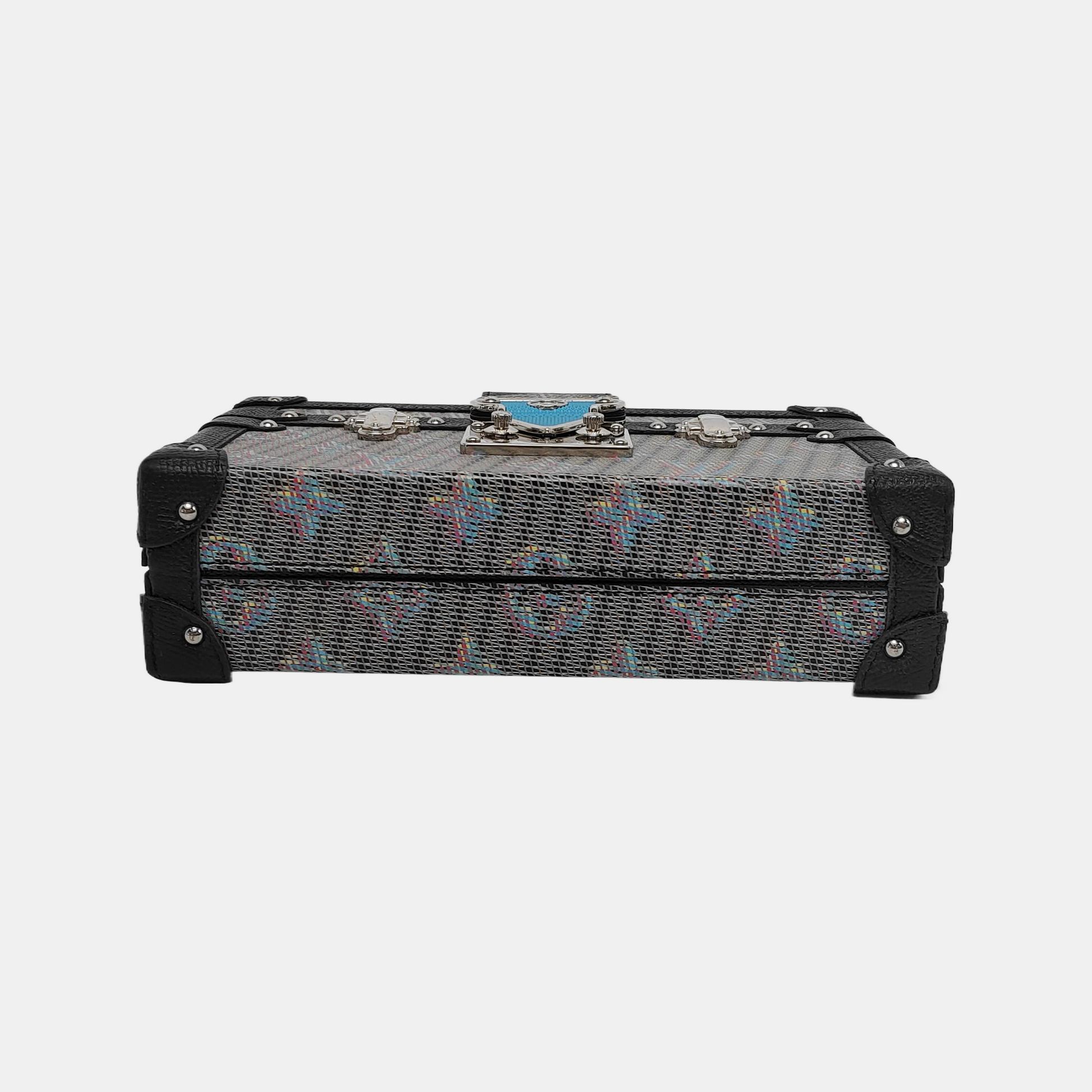 LOUIS VUITTON PETITE MALLE Gray Leather Printed Crossbody Shoulder Bag Silver Hardware Removable Strap-(SKU)-945960647