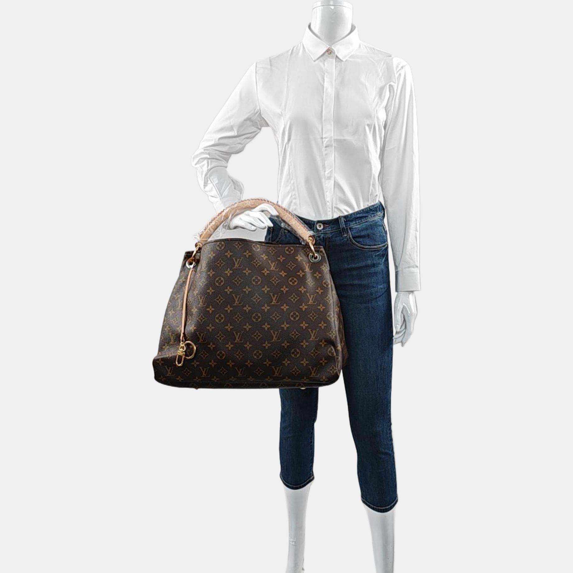 LOUIS VUITTON ARTSY Medium Brown Coated Canvas Monogram Single Shoulder Bag Handbag Gold Hardware-(SKU)-963602581