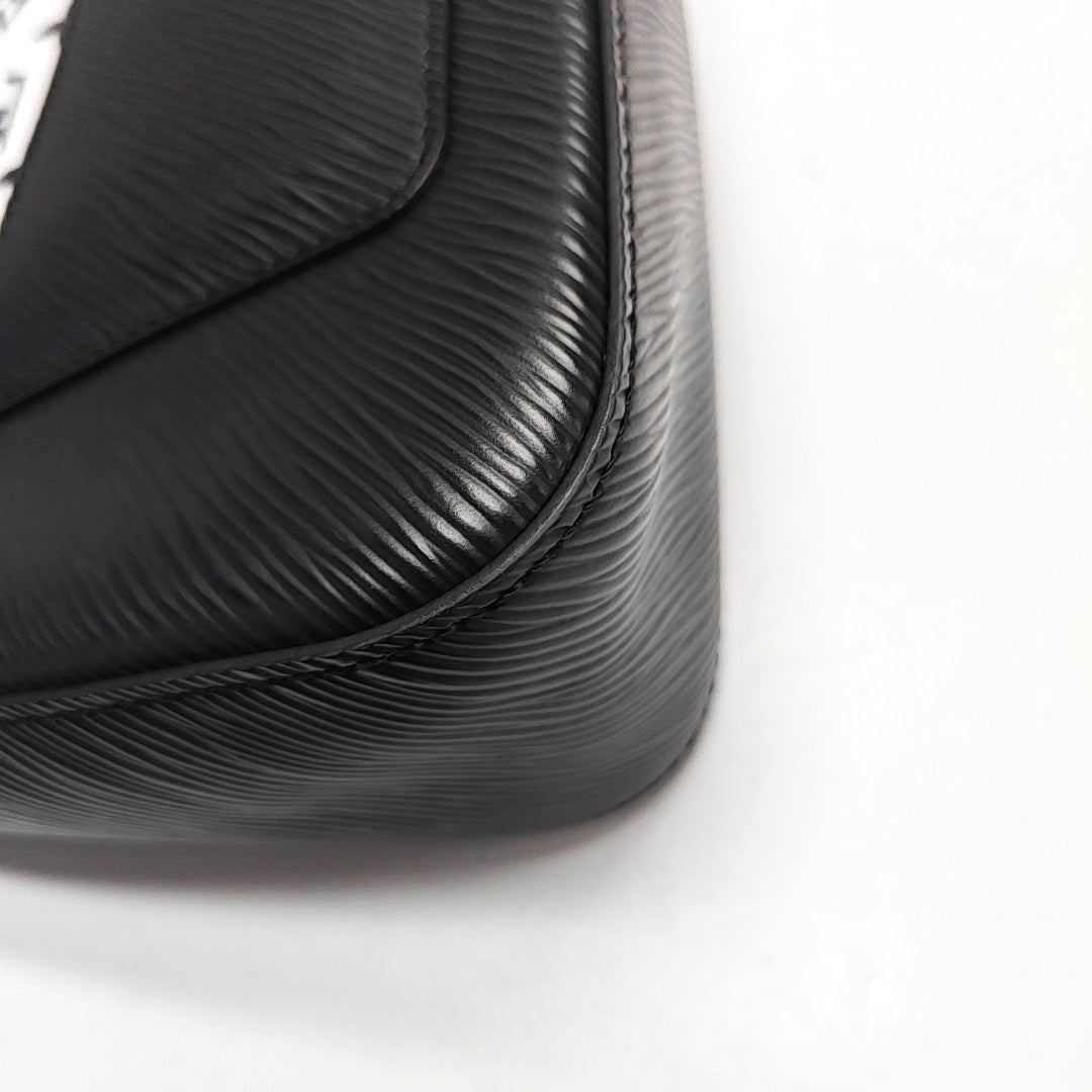 LOUIS VUITTON MARELLE Black EPI Leather Water Ripple Shoulder Bag with Shoulder Strap and Handle, Silver Hardware, Detachable Strap-(SKU)-933629695
