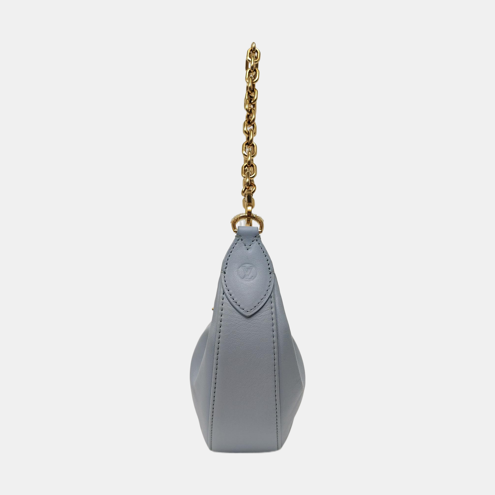 LOUIS VUITTON OVER THE MOON Small Size Blue Leather Monogram Embossed Dumpling Bag Shoulder Bag Crossbody Bag Handbag Detachable Strap Golden Hardware-(SKU)-968608135