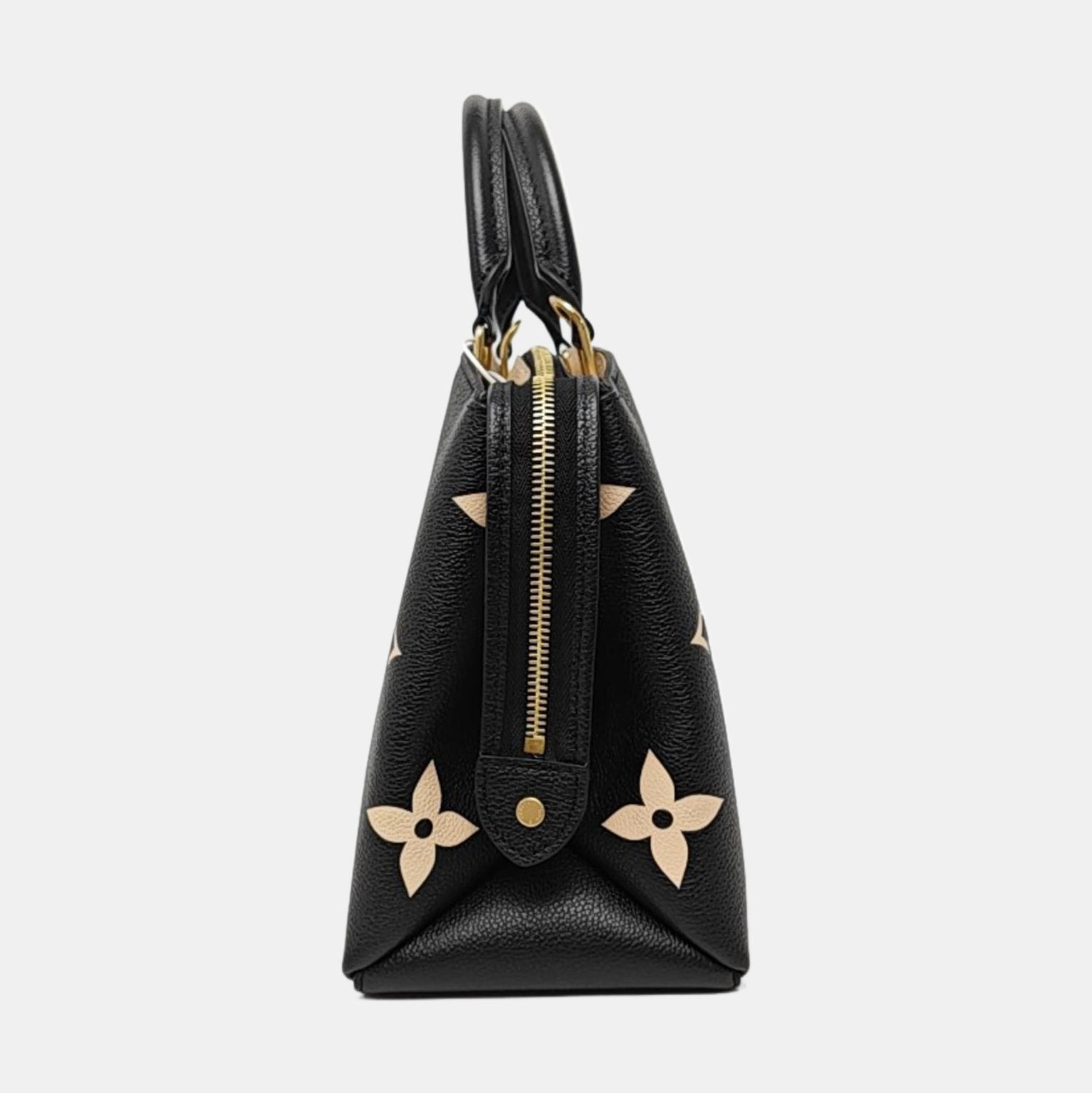 LOUIS VUITTON PALAIS Small Black Leather Monogram Embossed Crossbody Shoulder Bag Handbag Tote Bag Golden Hardware Removable Strap-(SKU)-965877183
