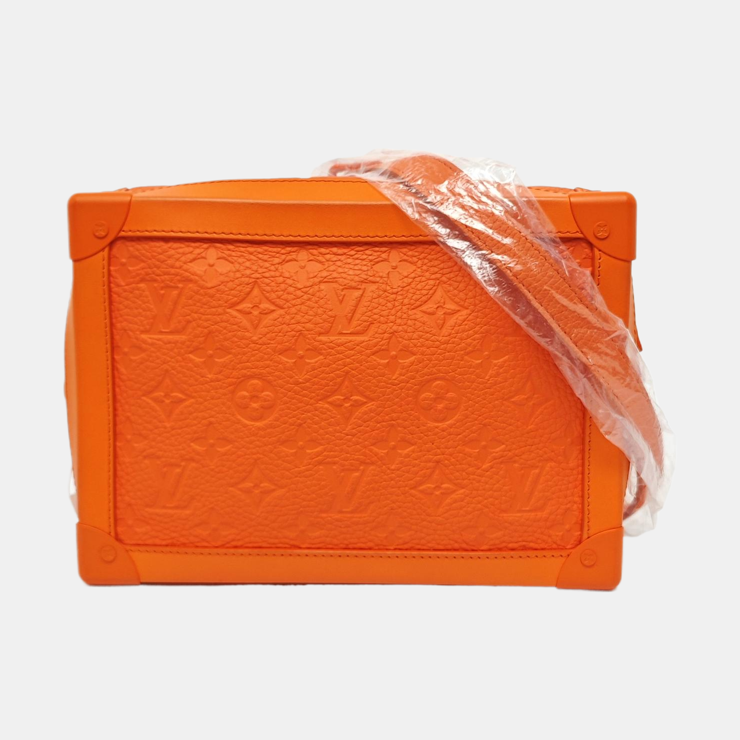 LOUIS VUITTON SOFT TRUNK Orange Leather Monogram Damier Ebene Shoulder Bag Tote Bag Crossbody Silver Hardware Removable Shoulder Strap-(SKU)-966422103
