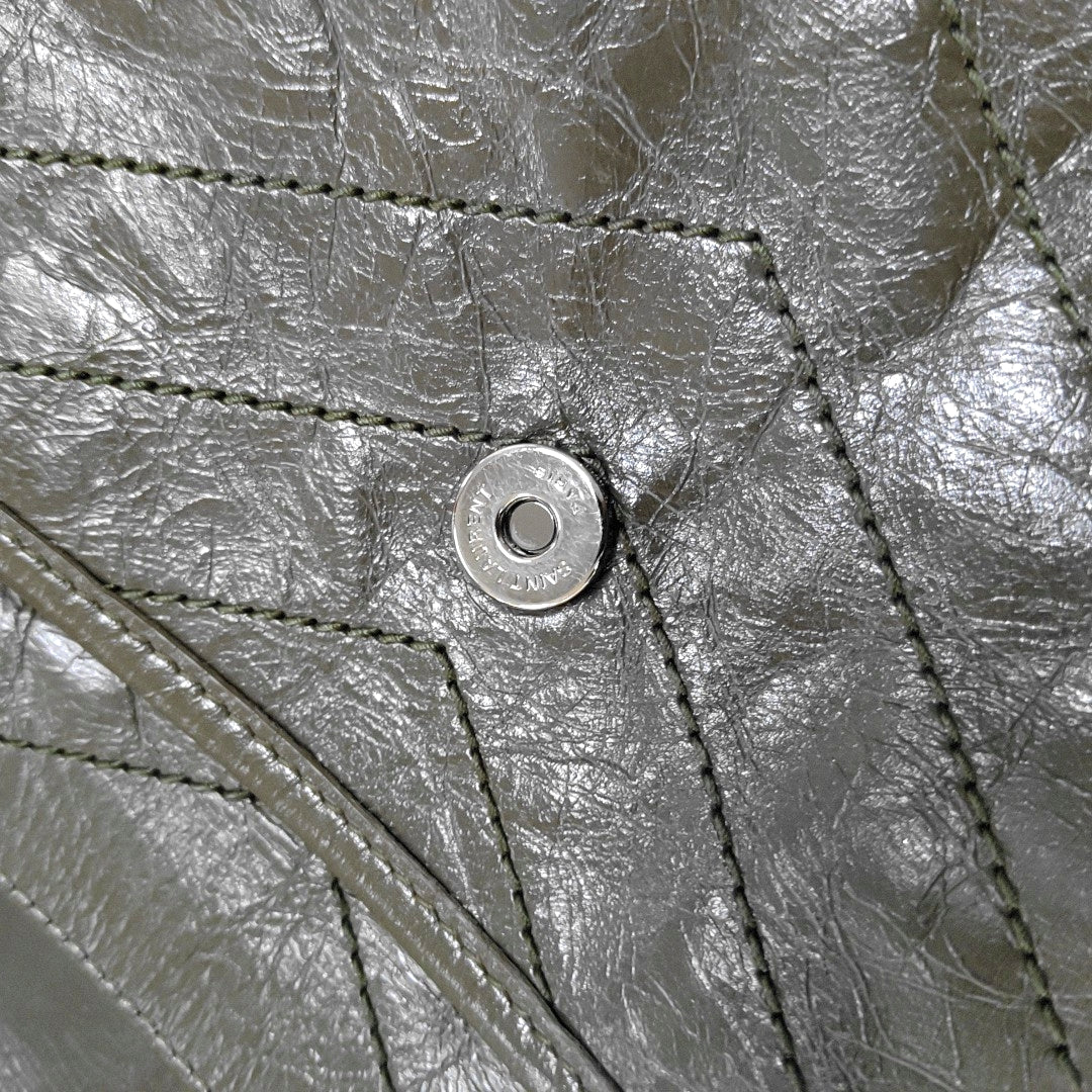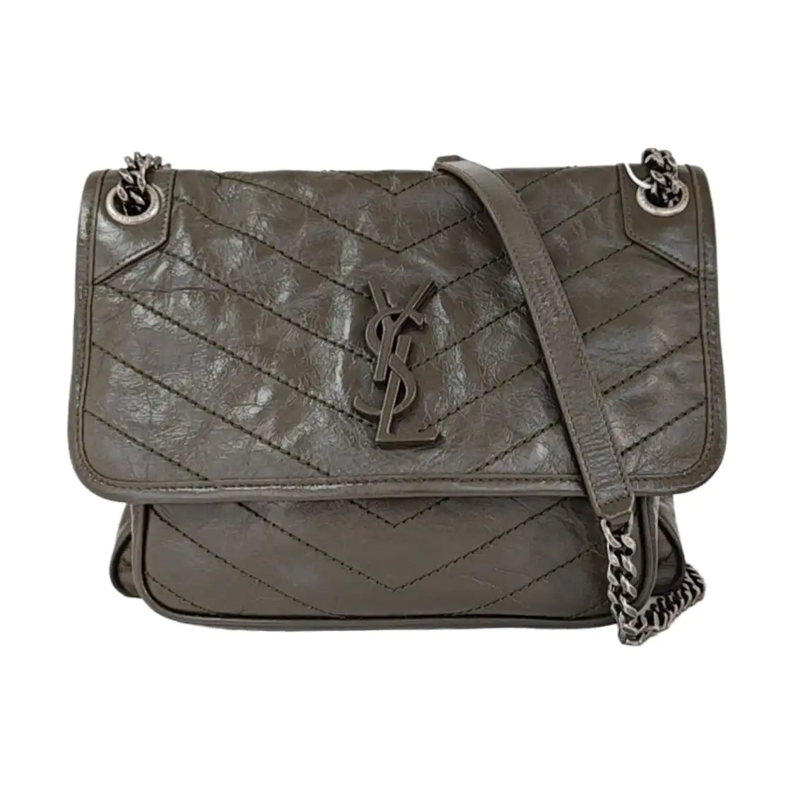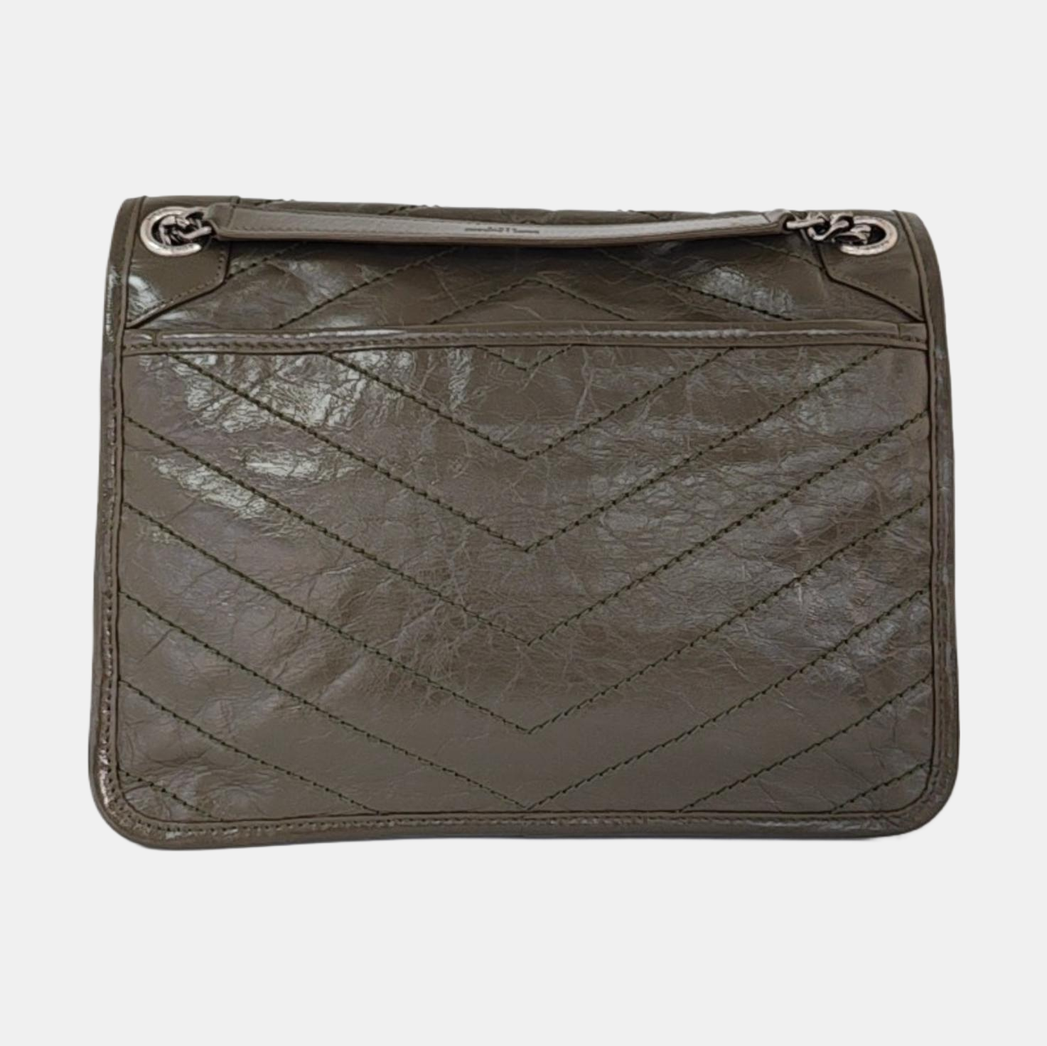 YSL NIKI Medium Grey Calfskin V-Shape Pleated Single Shoulder Bag and Crossbody with Silver Grey Hardware-(SKU)-969271602