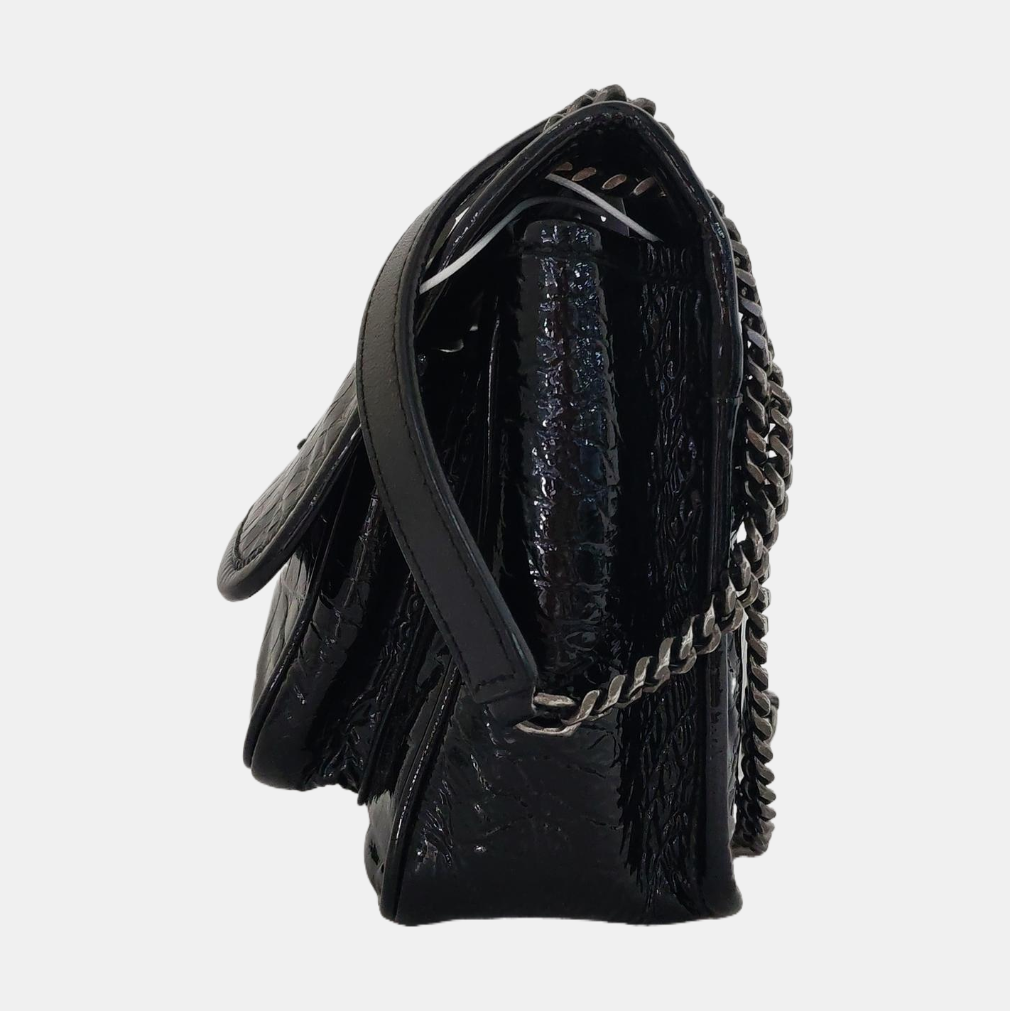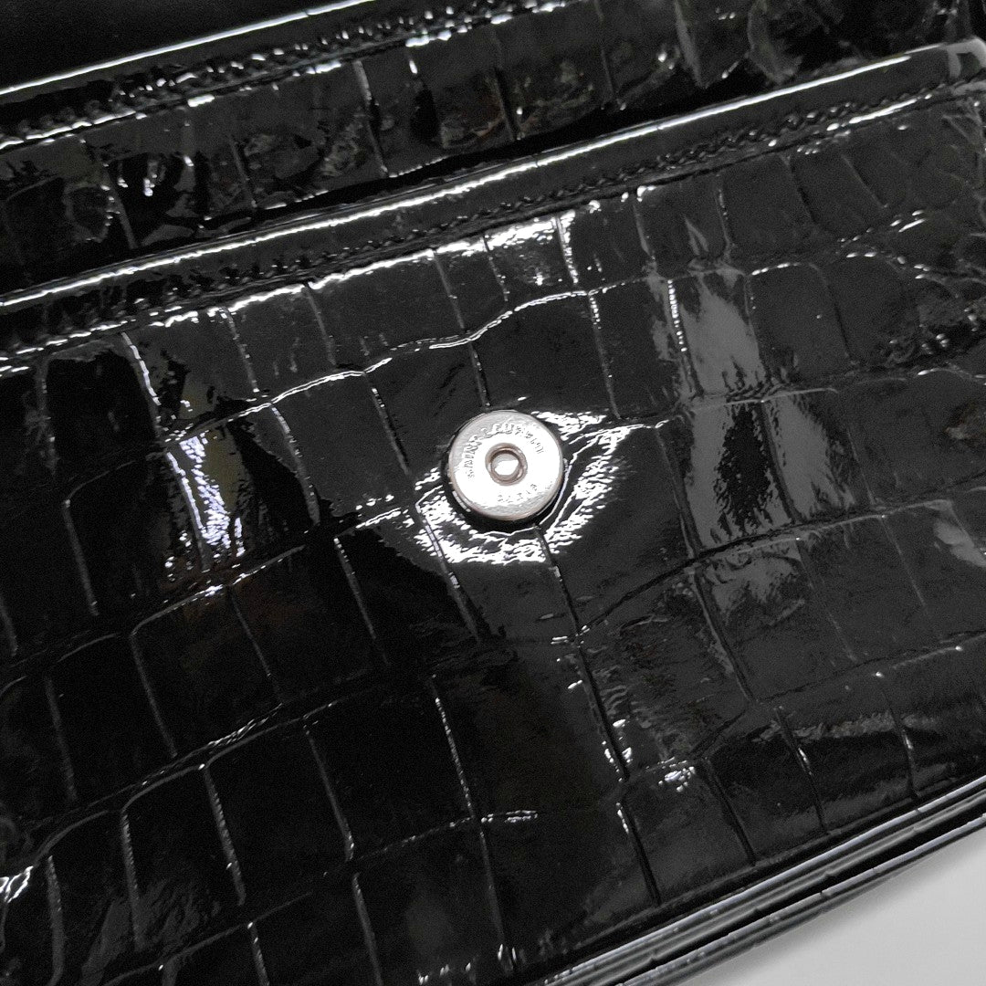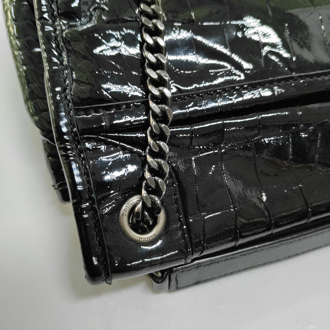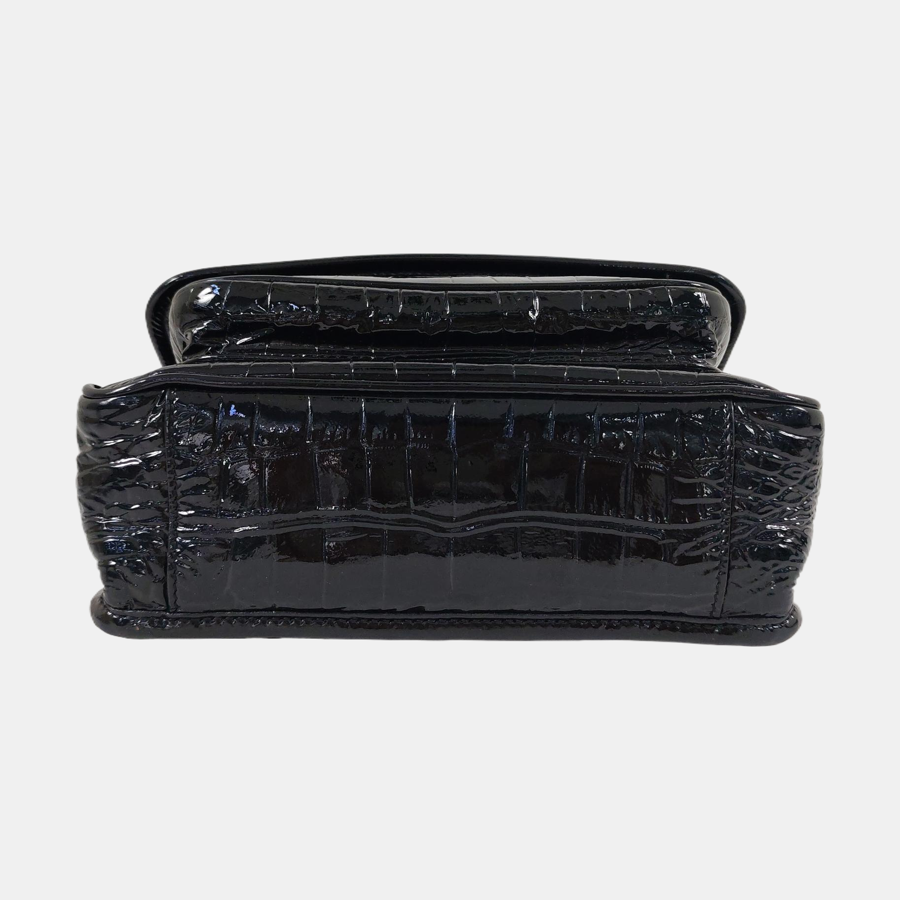 YSL NIKI Small Size Black Patent Leather Crocodile Embossed Single Shoulder Bag Crossbody Bag Palladium Hardware-(SKU)-965692565